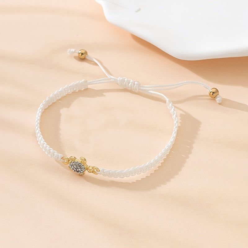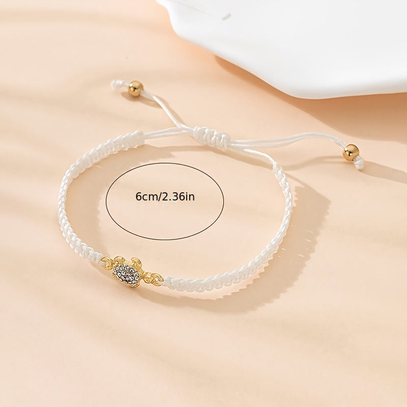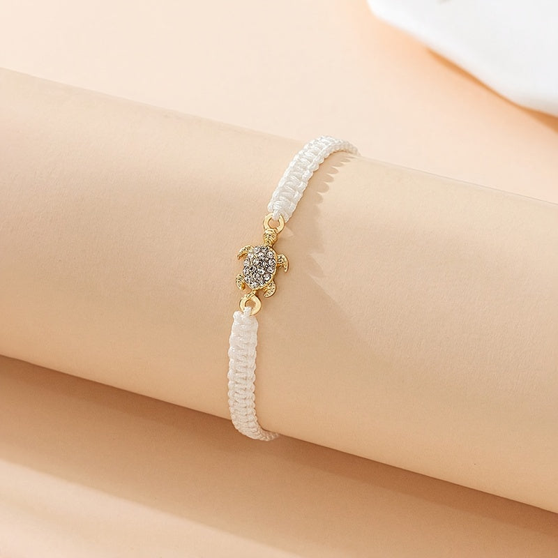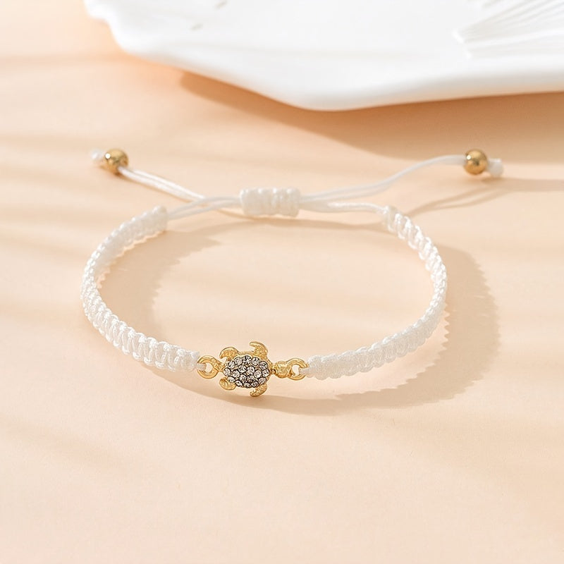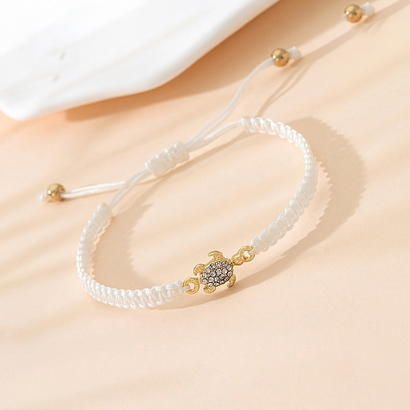 This braided bracelet features a sea turtle charm with a beautiful gemstone accent and golden beads. Perfect for a casual, minimalist look.