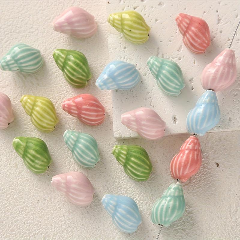 These ceramic conch beads are perfect for creating unique bracelets, necklaces, and other jewelry pieces. Each bead has a straight hole for easy stringing.