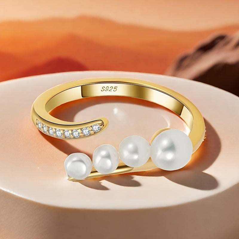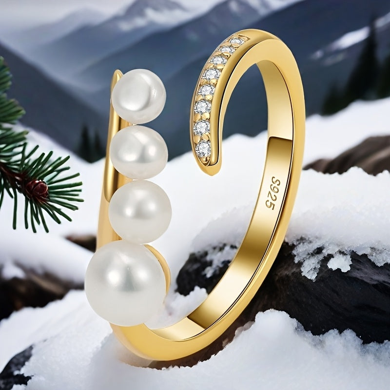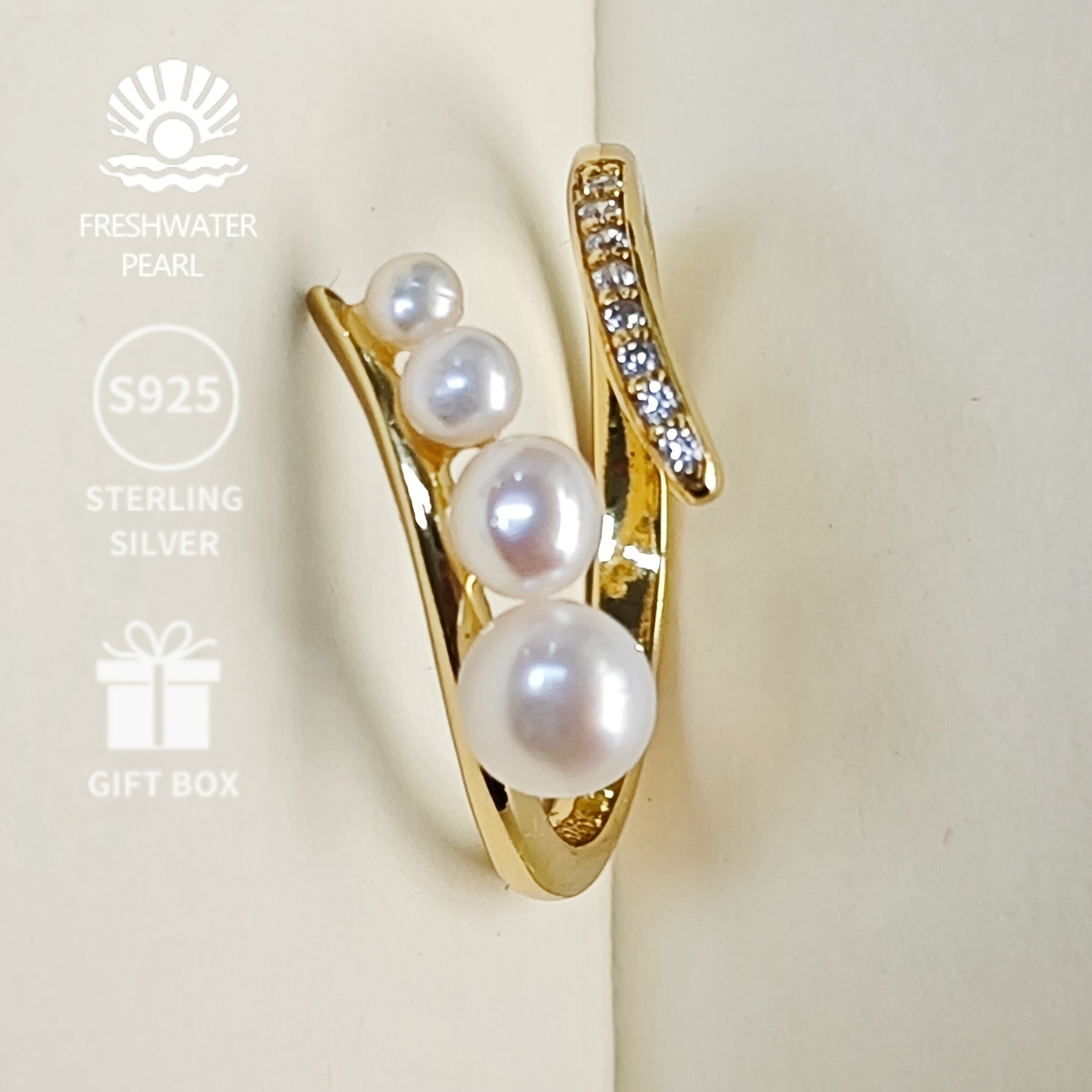 Add a touch of boho chic to your look with this 14K golden plated 925 sterling silver open ring featuring freshwater pearls. Perfect for daily wear and party occasions during the winter season.