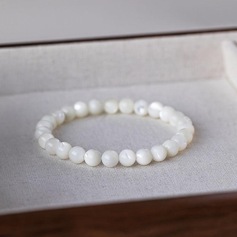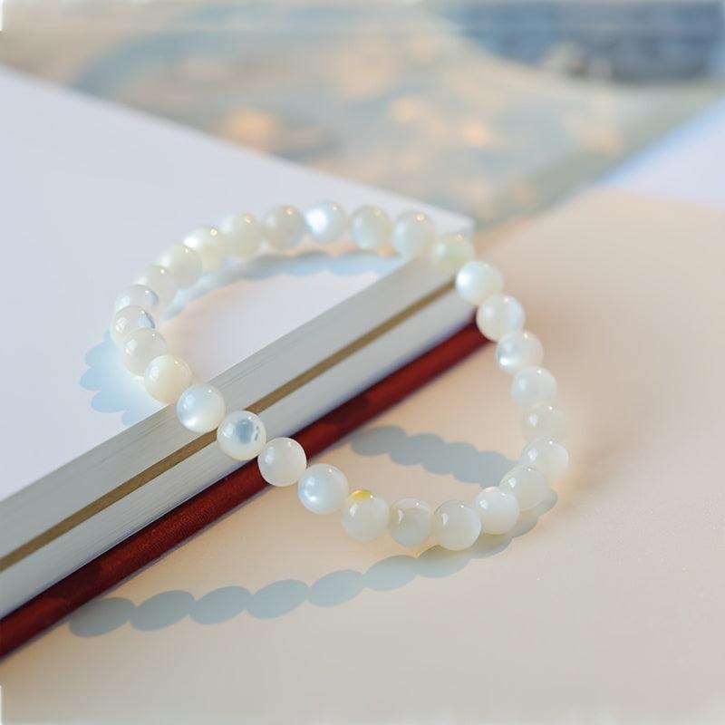 This stylish shell bead bracelet is a perfect gift for a girlfriend or a close friend. It is a wonderful accessory that adds elegance to any outfit.