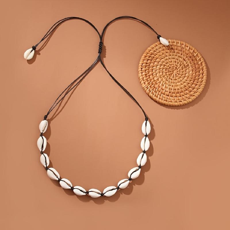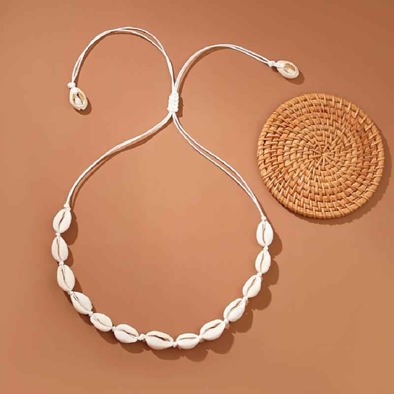 This one-piece shell woven necklace bracelet features a bohemian beach style design, making it a perfect gift for any occasion.