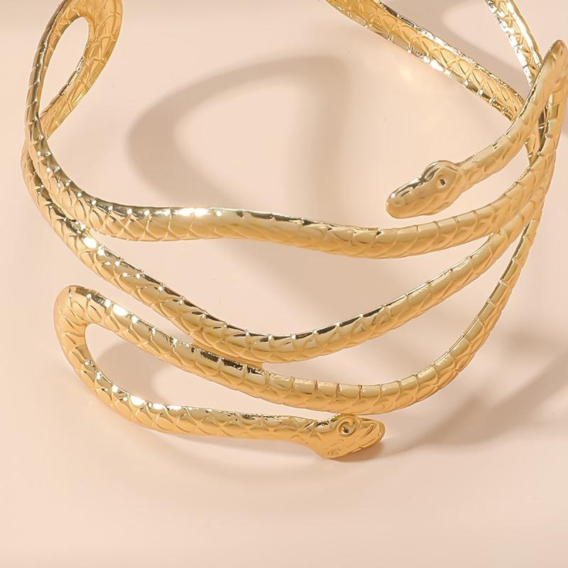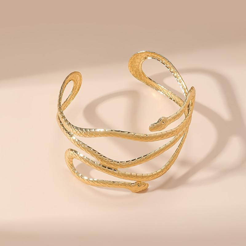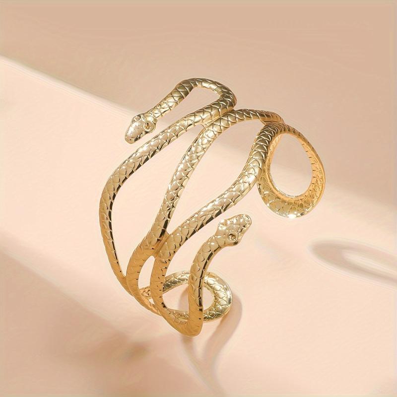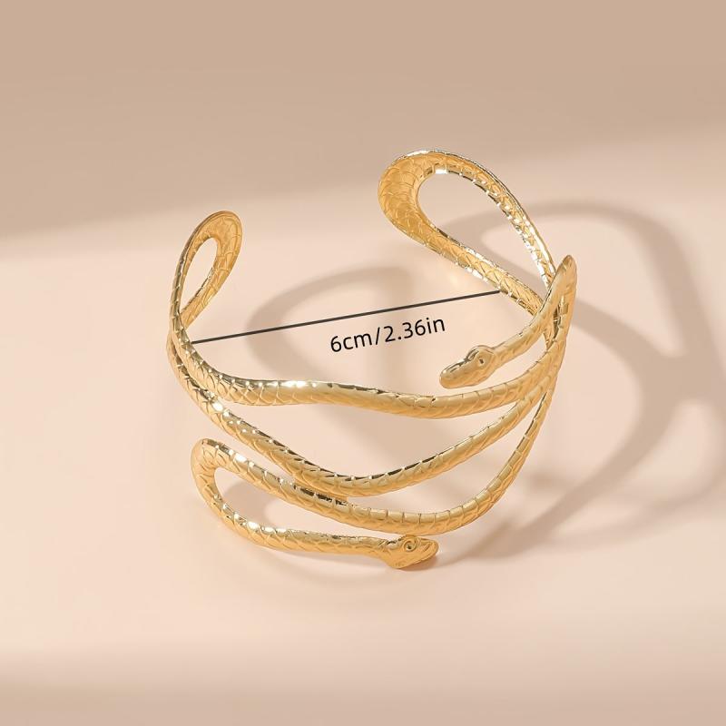 This creative snake golden open bangle is a perfect accessory for those who love hip hop and goth style. It is made of iron and makes a great gift for females.