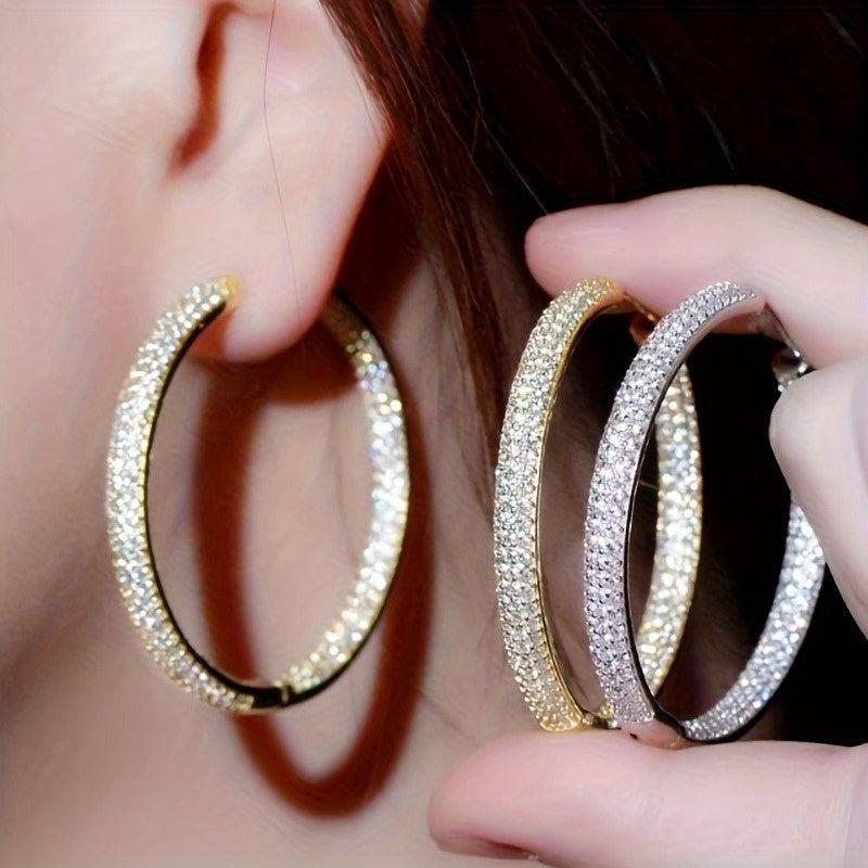 Add a touch of glamour to your look with these large hoop earrings featuring sparkling cubic zirconia. These elegant earrings are perfect for weddings, parties, and everyday wear.