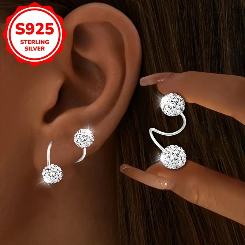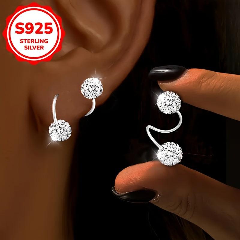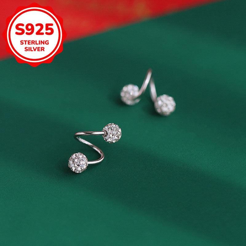 These stunning earrings feature synthetic zirconia inlaid Shambhala stud ball spiral design. Made from glittering 1.6g S925 silver, they are suitable for daily wear.
