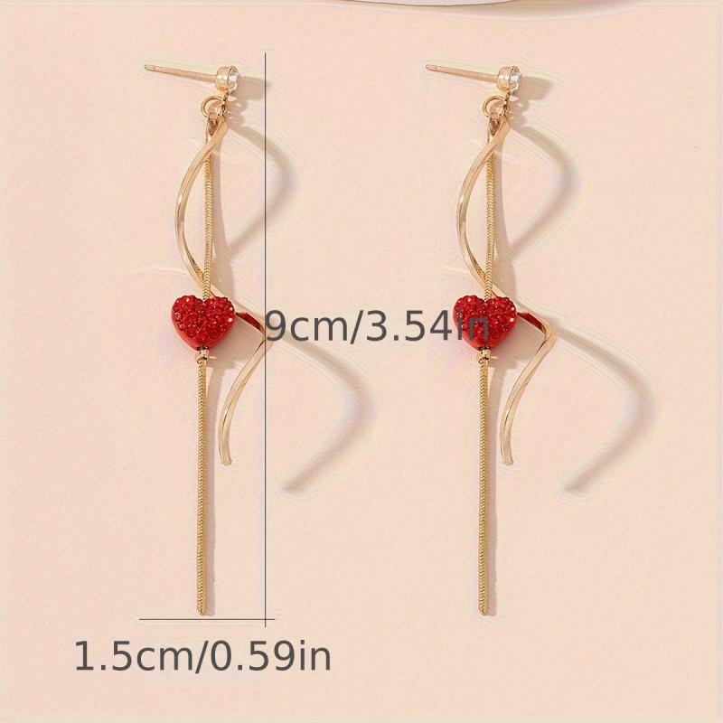 These elegant earrings feature a pair of spiral heart dangles with gemstone accents in a golden tone metal setting. Perfect for everyday wear or special occasions, these delicate earrings make a versatile addition to any jewelry collection.
