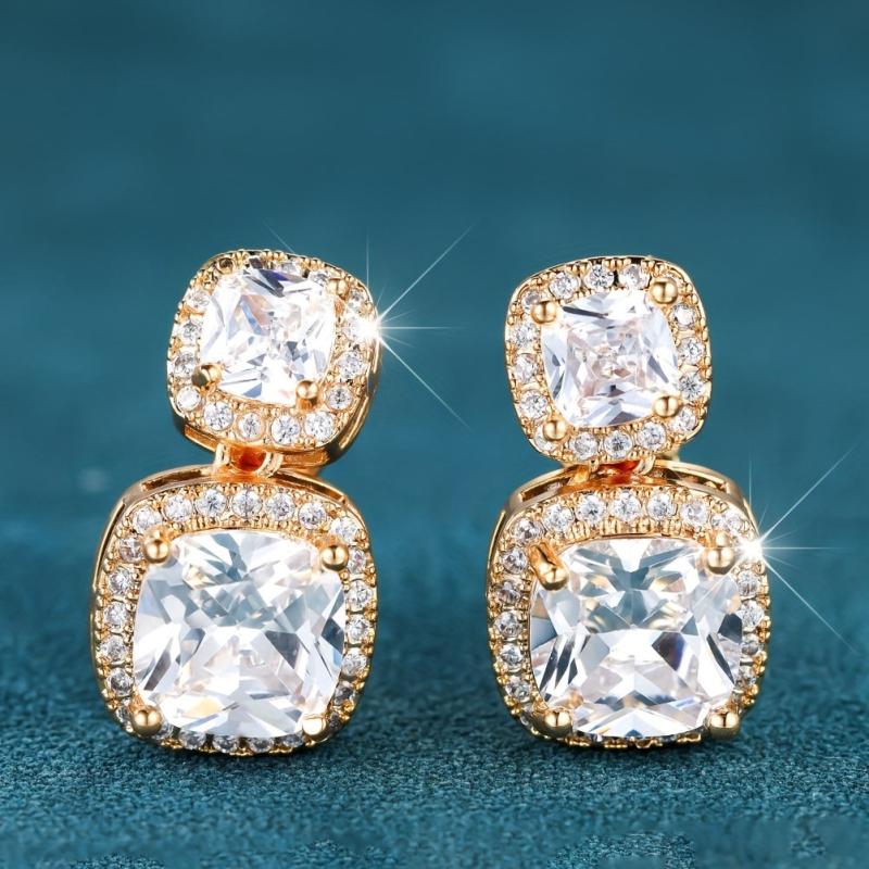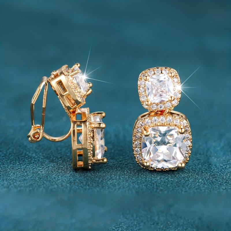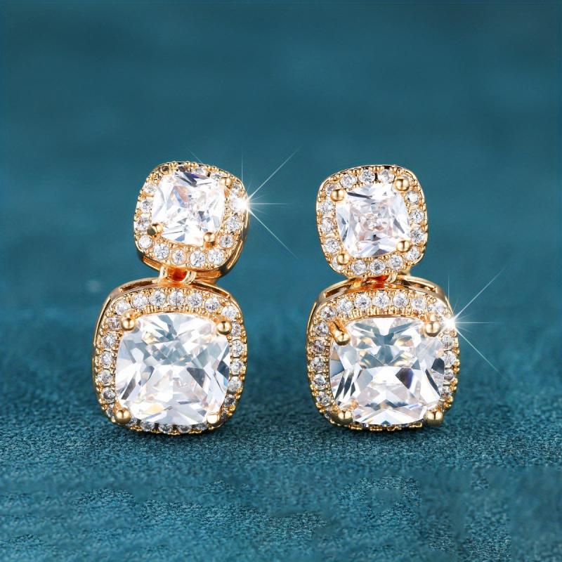 Add a touch of elegance to your look with these stunning earrings featuring square zirconia stones in four-claw settings.