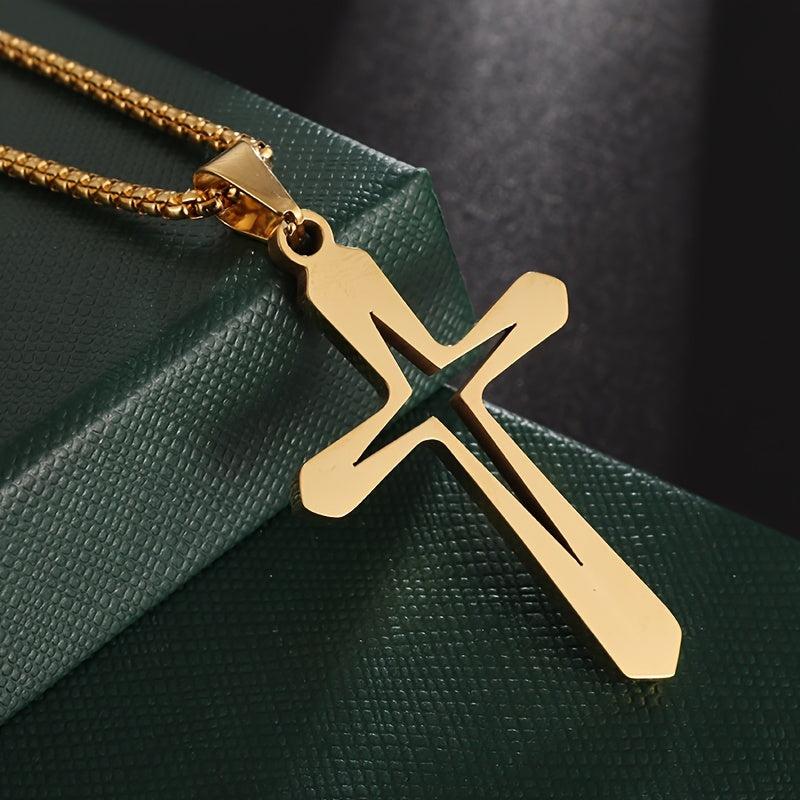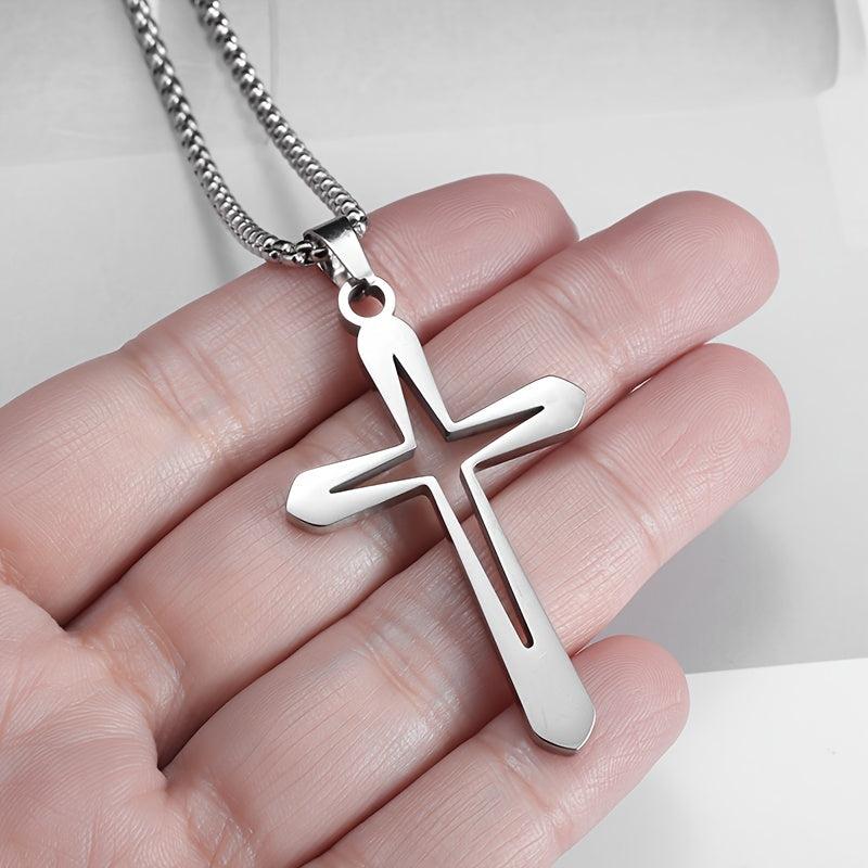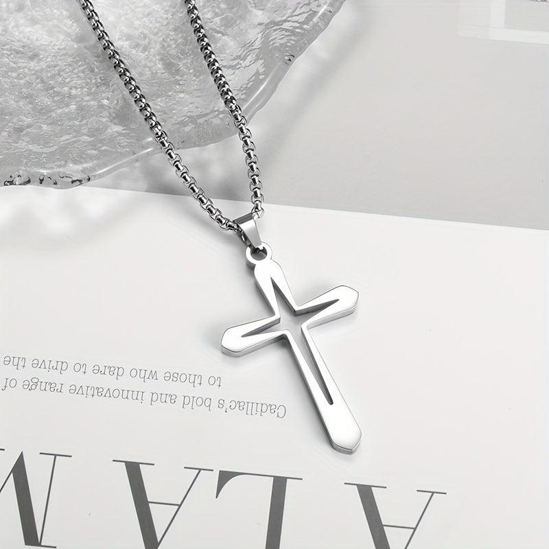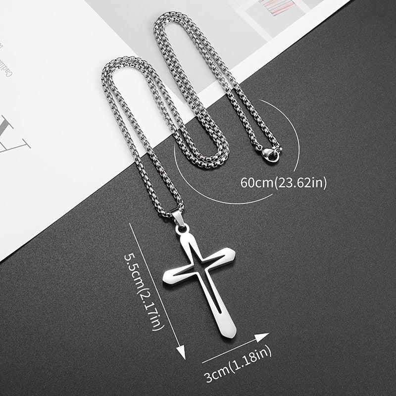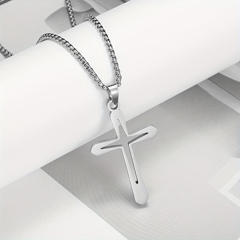 This stainless steel cross pendant necklace features a classic style, making it suitable for daily wear and gift giving occasions. It is non-plated and perfect for both men and women.