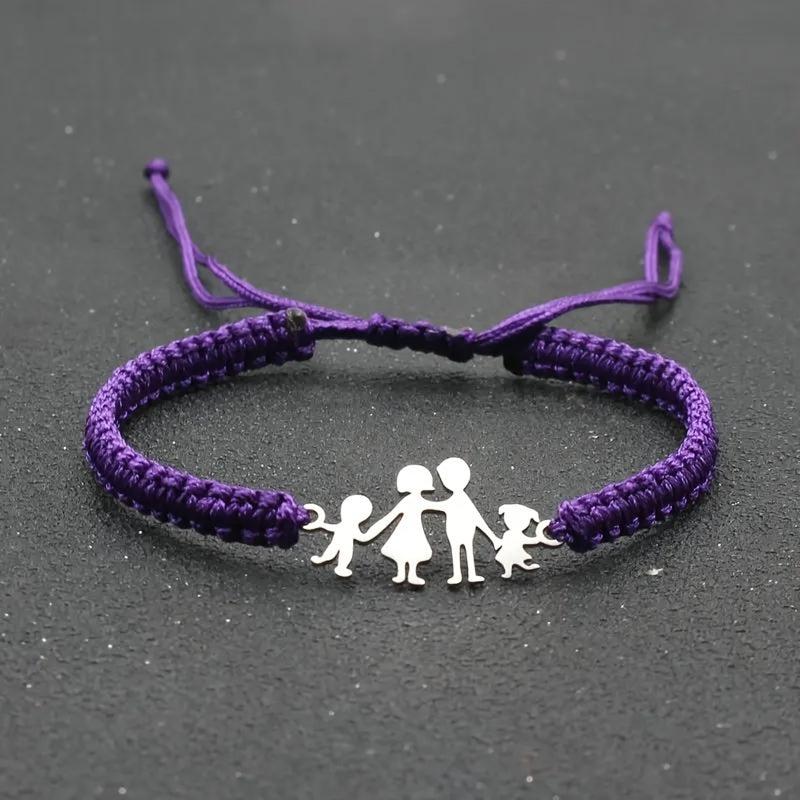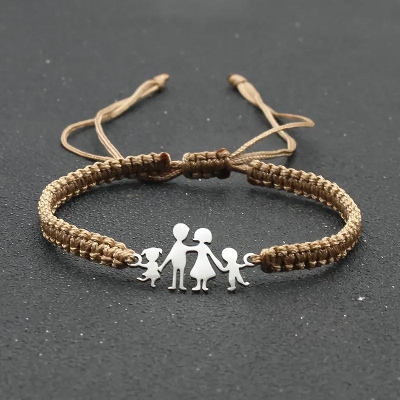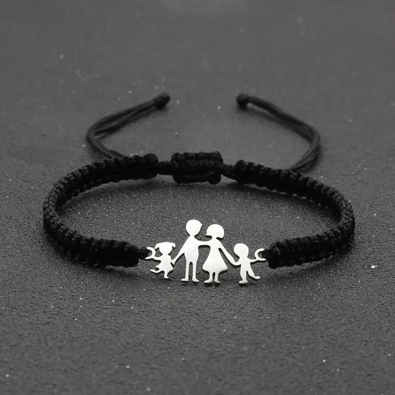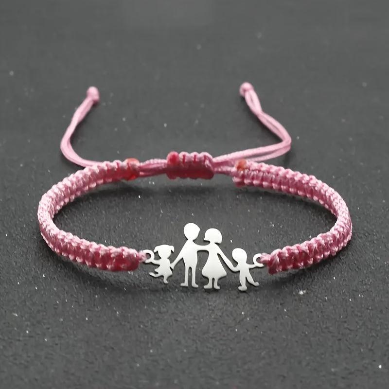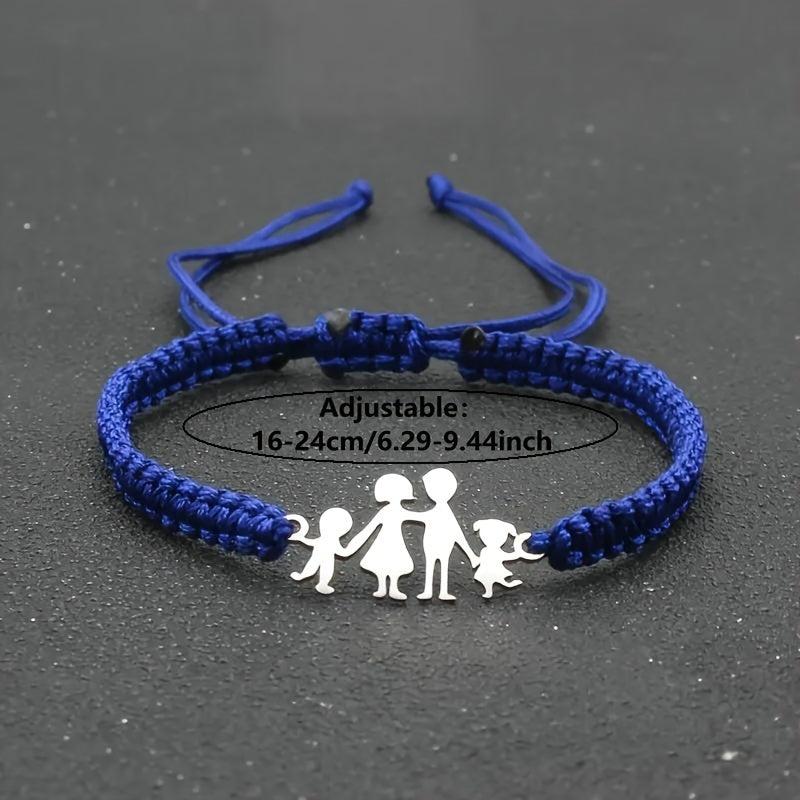 This stainless steel family charm bracelet is a perfect gift for mom, dad, son, and daughter. The adjustable braided rope design adds a touch of style and sentimentality.