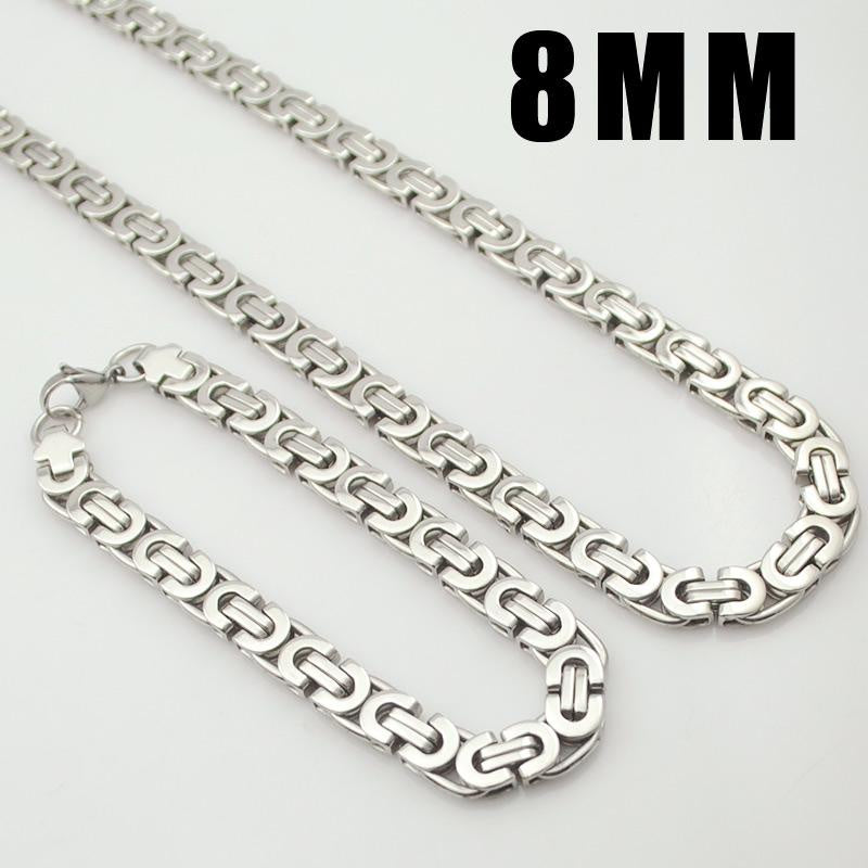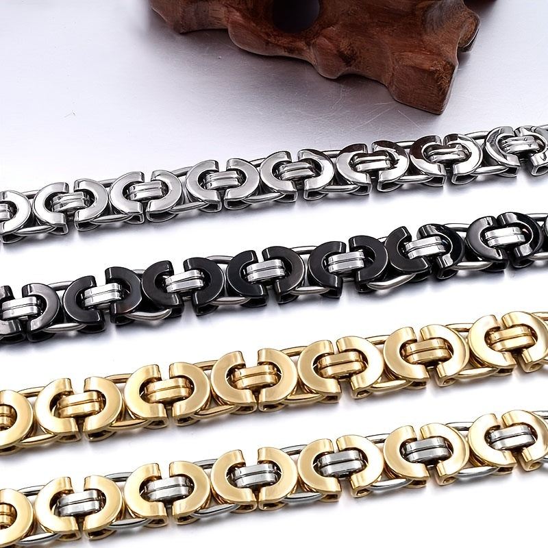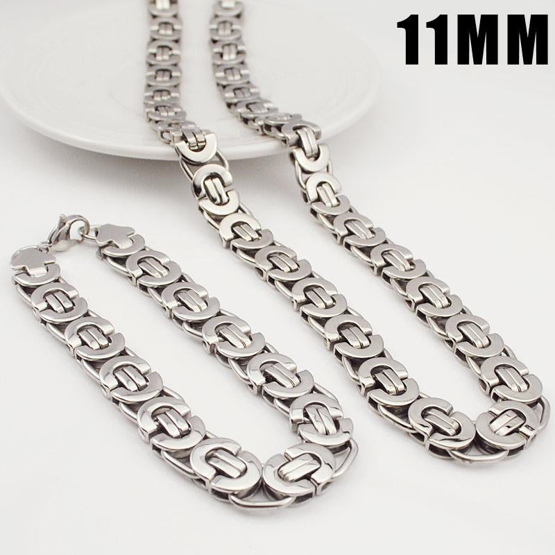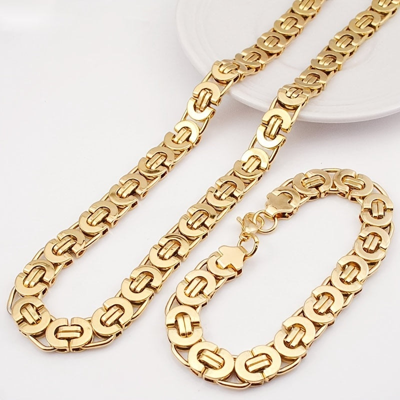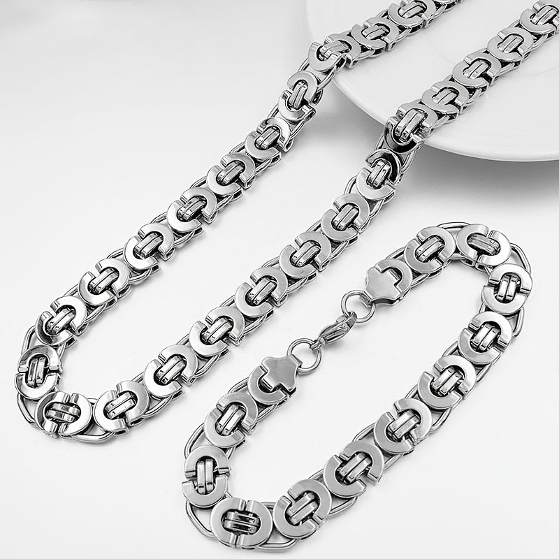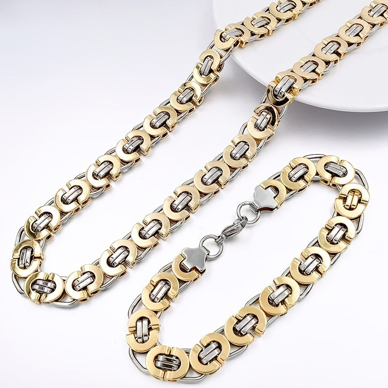 Elegant and timeless men's jewelry set featuring an Egyptian Byzantine flat bangle and necklace. Crafted from durable stainless steel, this set is perfect for casual or formal wear.
