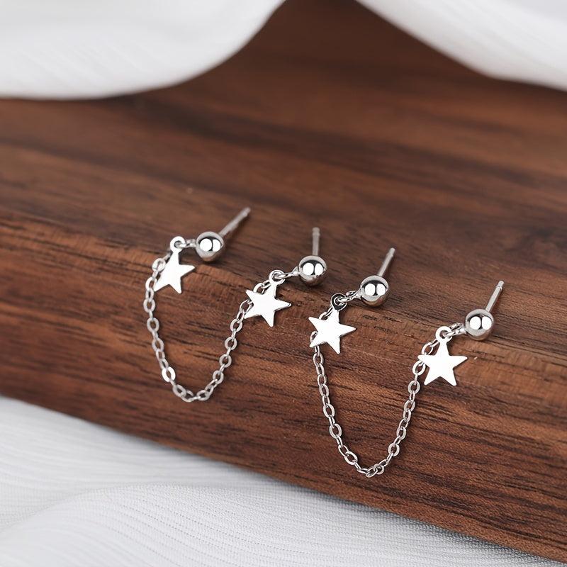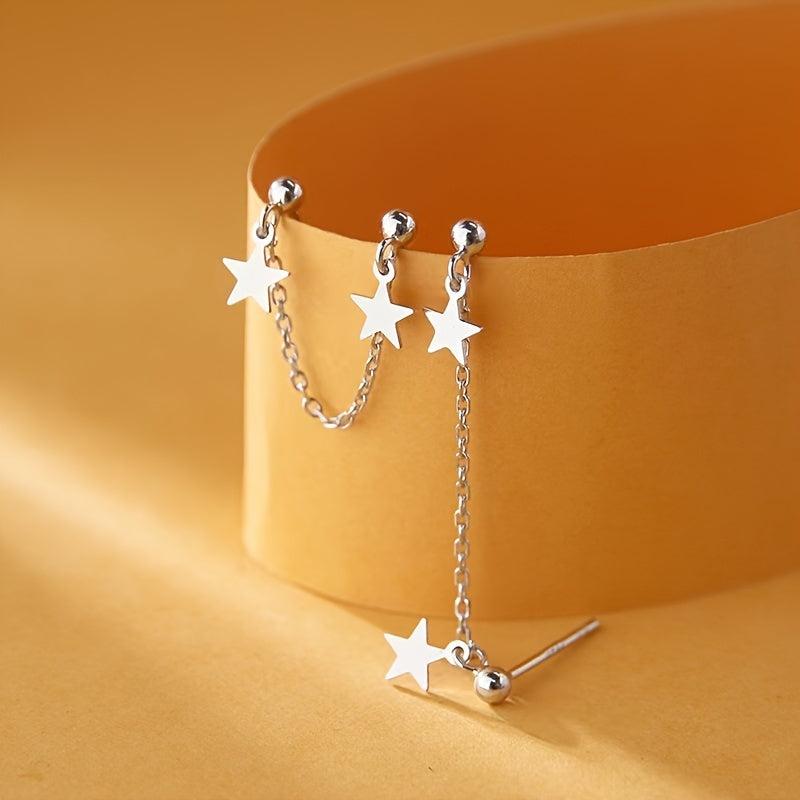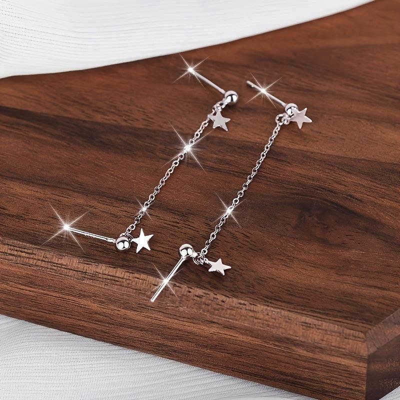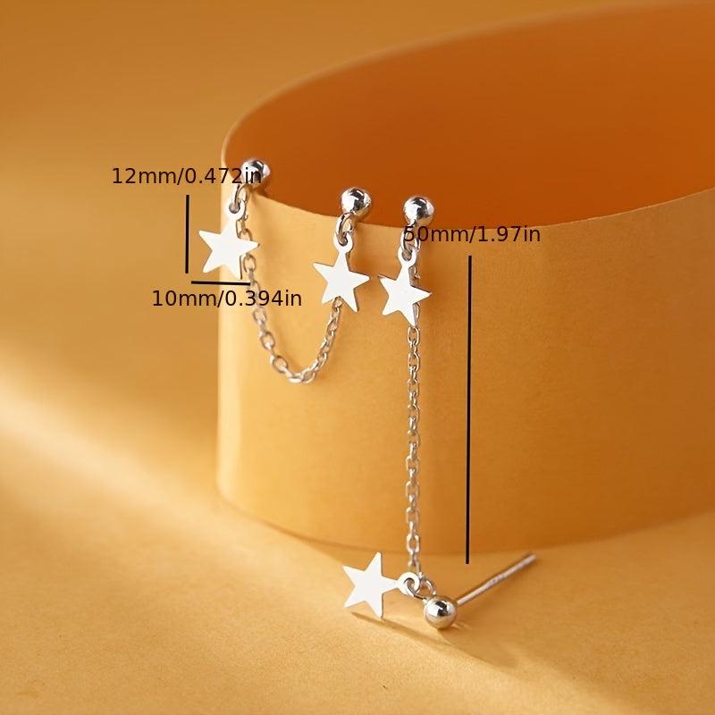 Add a touch of celestial charm to your look with this pair of stainless steel pierced earrings. The set features five-pointed star studs with tassels, perfect for a trendy and versatile style.