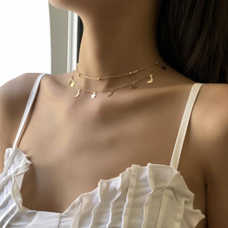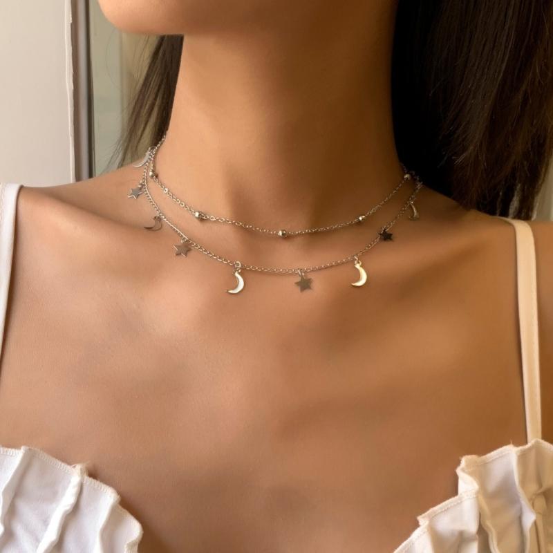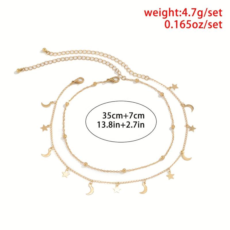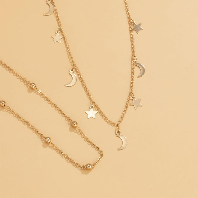 This set includes 2 charming necklaces featuring a star and moon design. Perfect for everyday wear or special occasions.