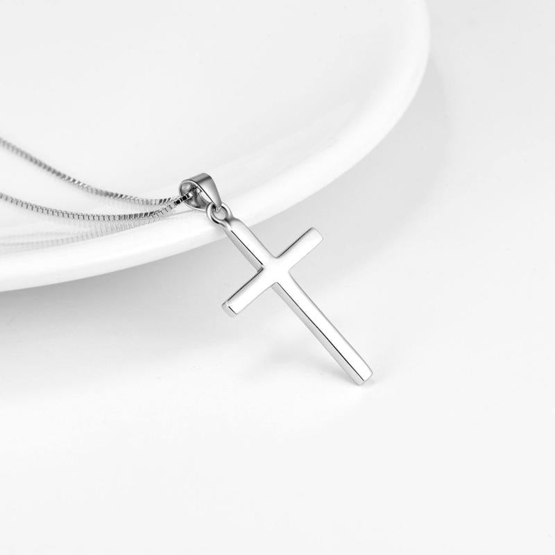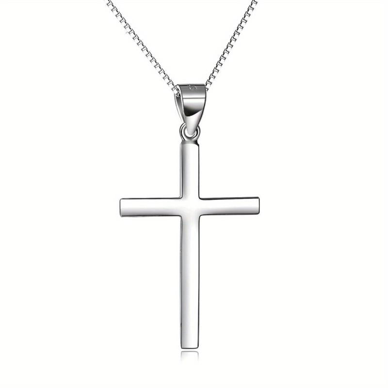 This elegant sterling silver cross necklace is a beautiful religious accessory for women and boys. The high polished finish adds a touch of sophistication to any outfit.