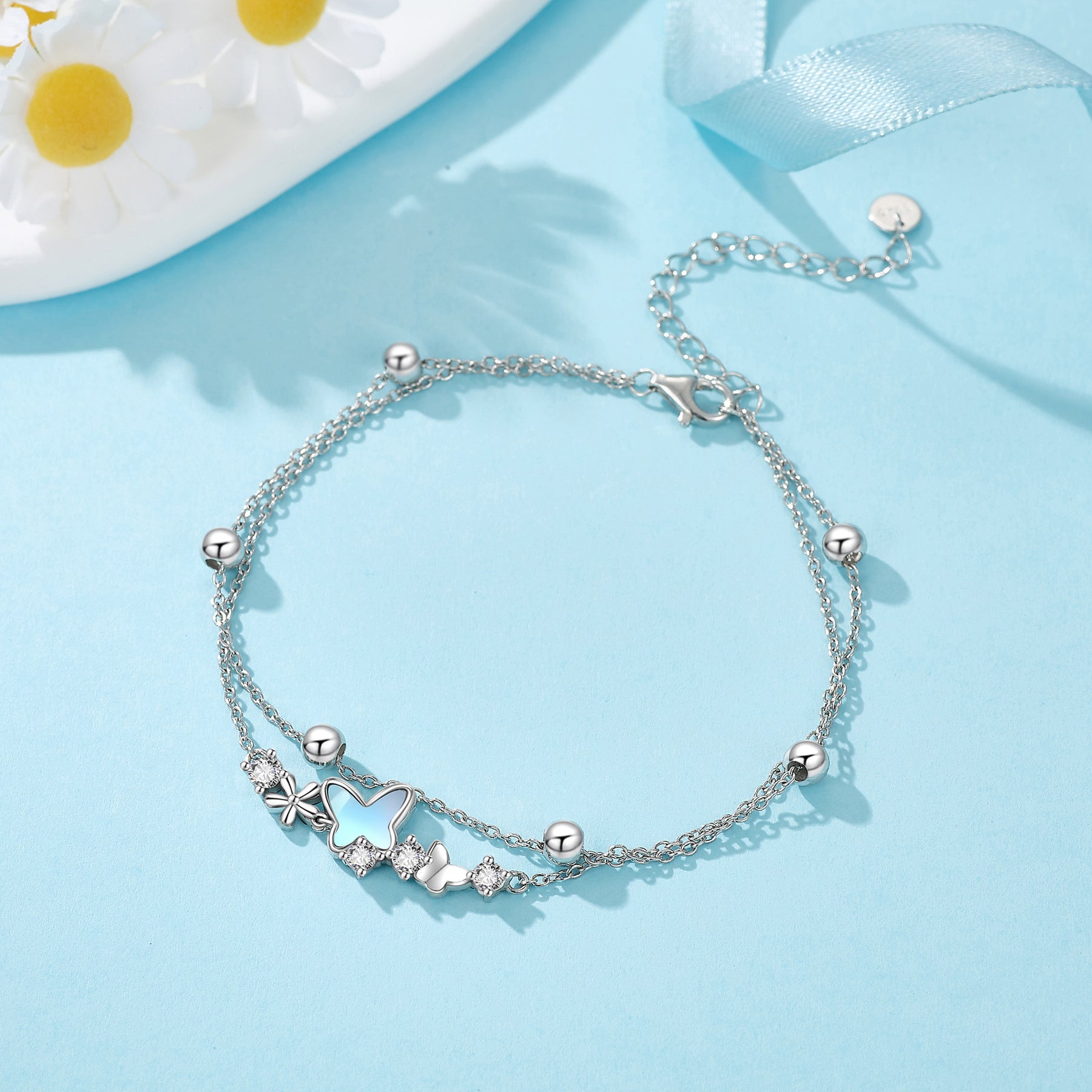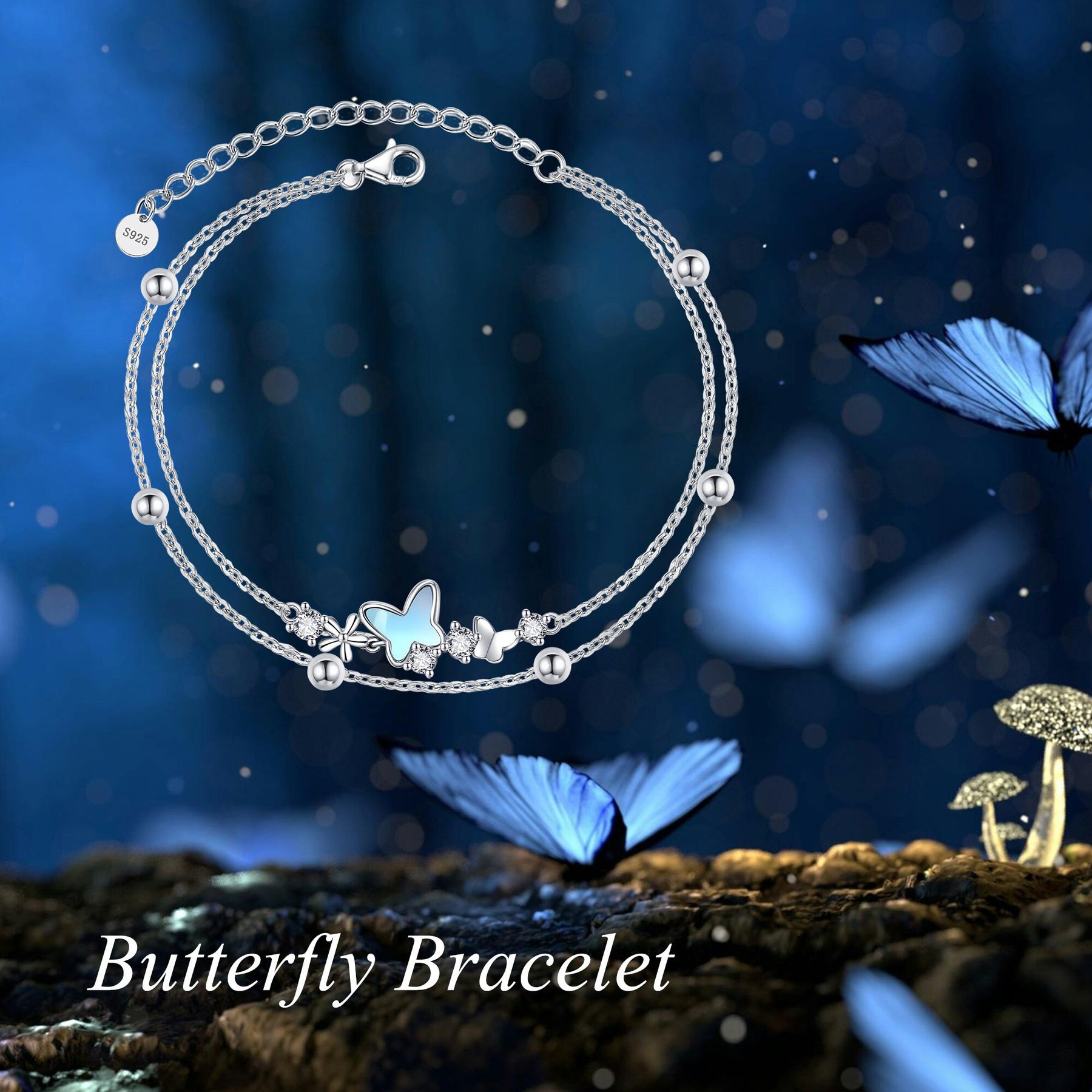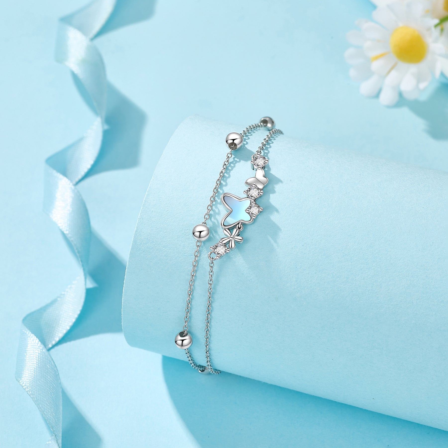 Adorn your wrist with this exquisite Sterling Silver Butterfly Bracelet featuring shimmering moonstone. Perfect for adding a touch of elegance to any outfit.