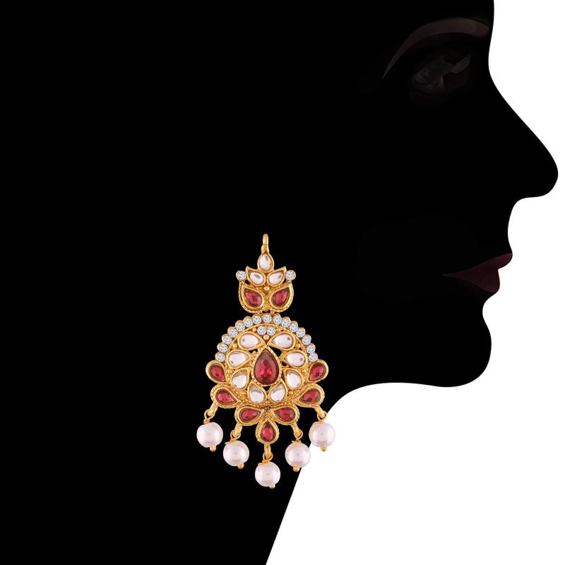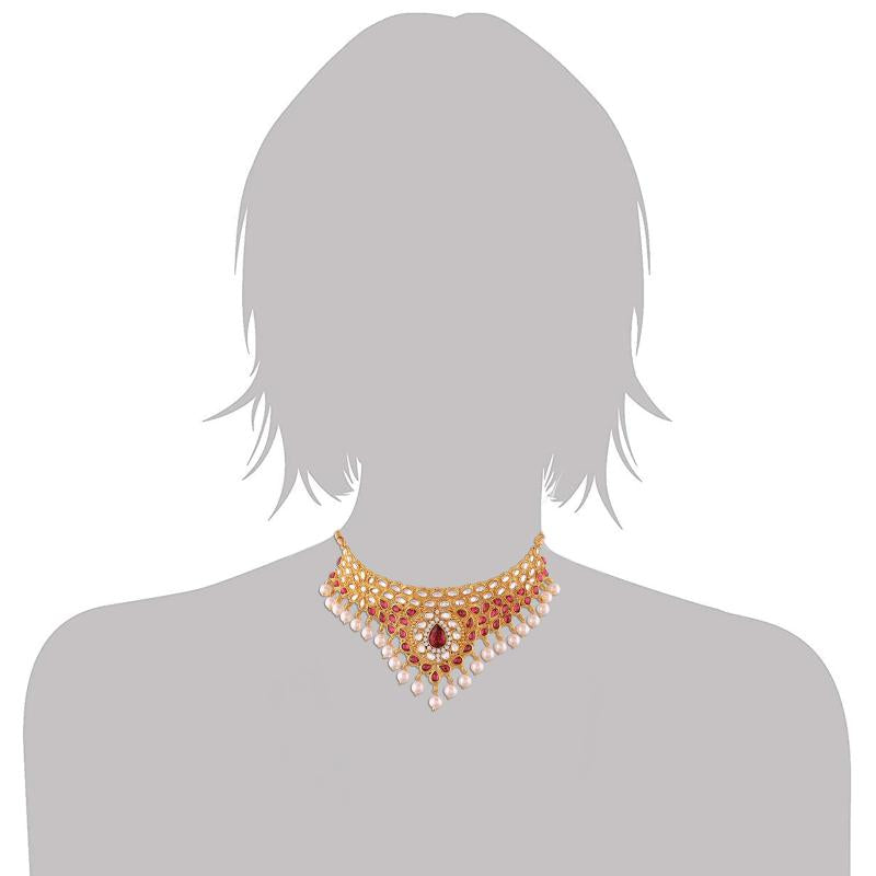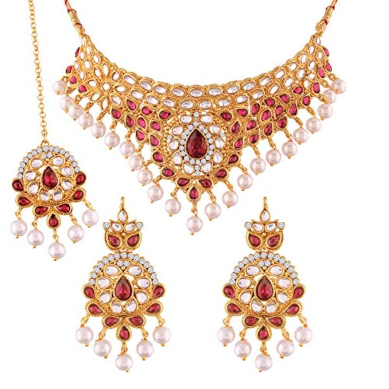 Complete your ethnic look with this stunning choker necklace set adorned with traditional stones. Includes matching earrings and maang tikka.