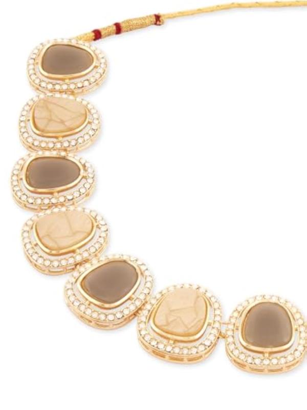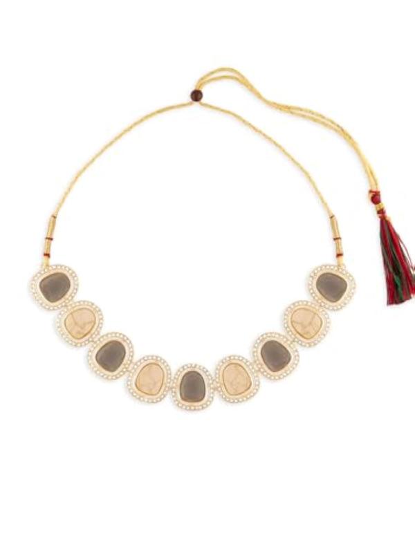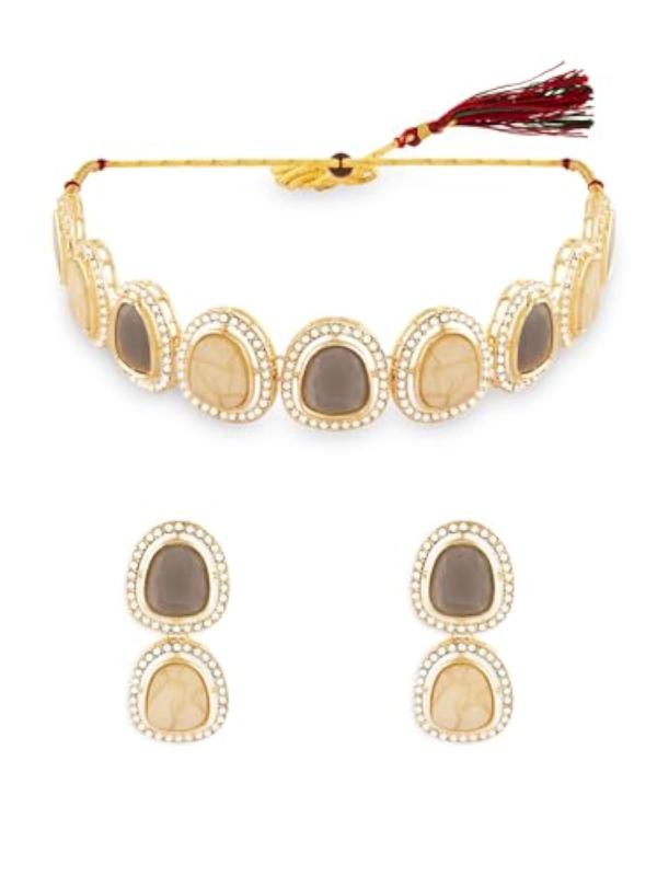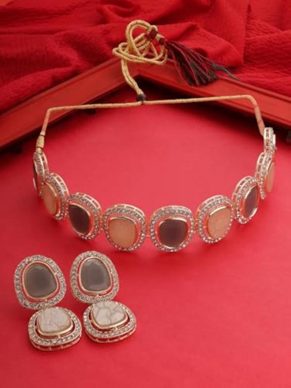 Elegant choker necklace and earring set with mother of pearl embellishments for women.