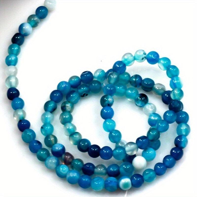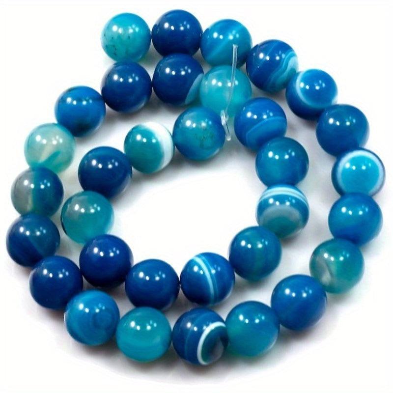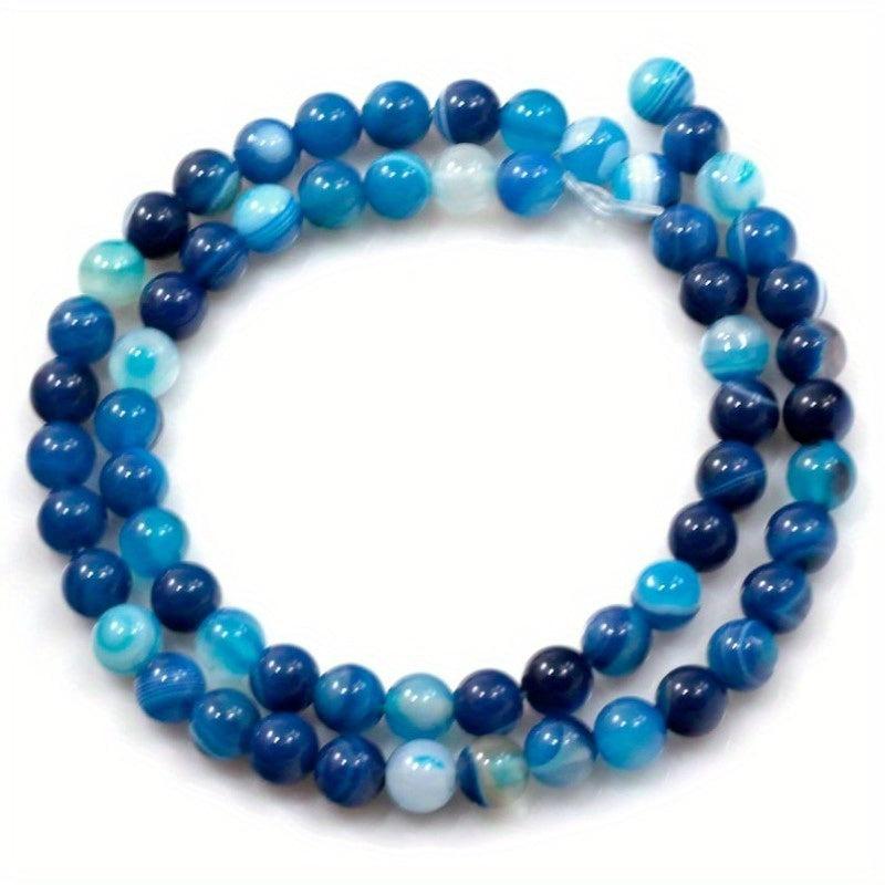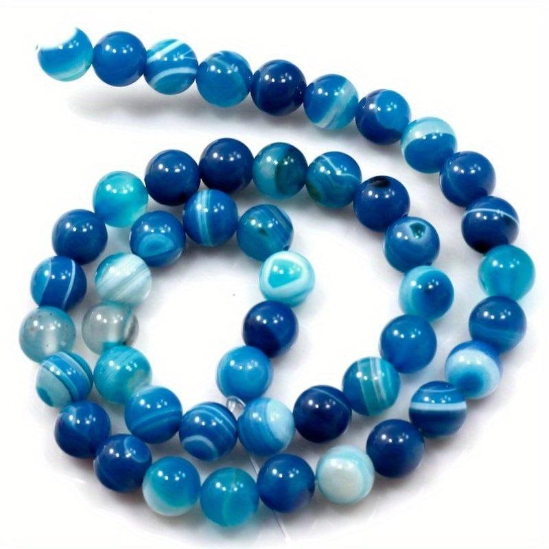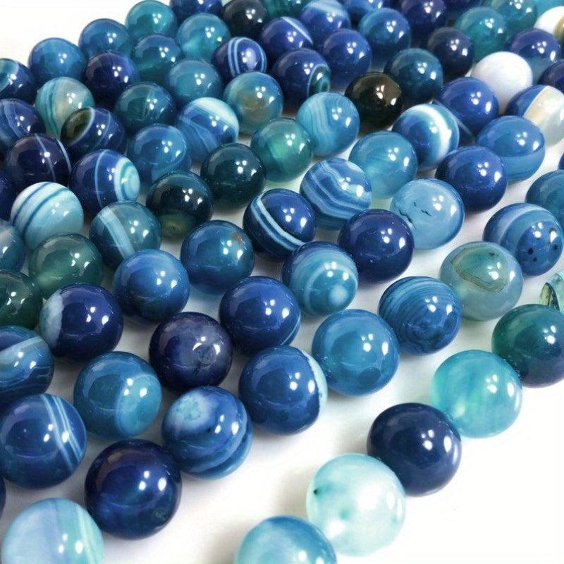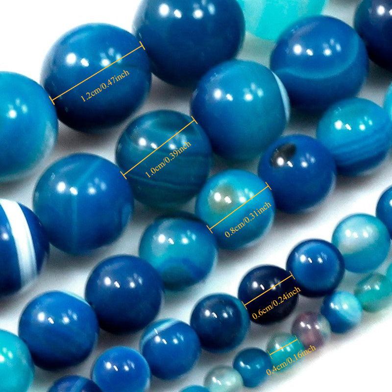 These natural stone beads feature smooth round shapes with alternating white and navy stripes. Each strand contains approximately 32-94 beads for your jewelry making needs.