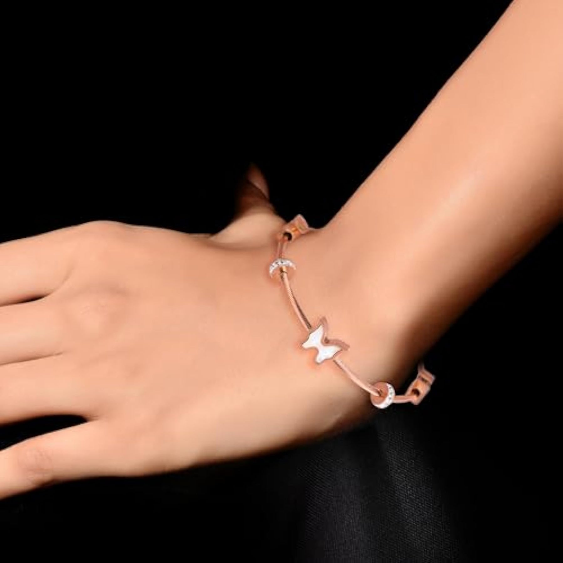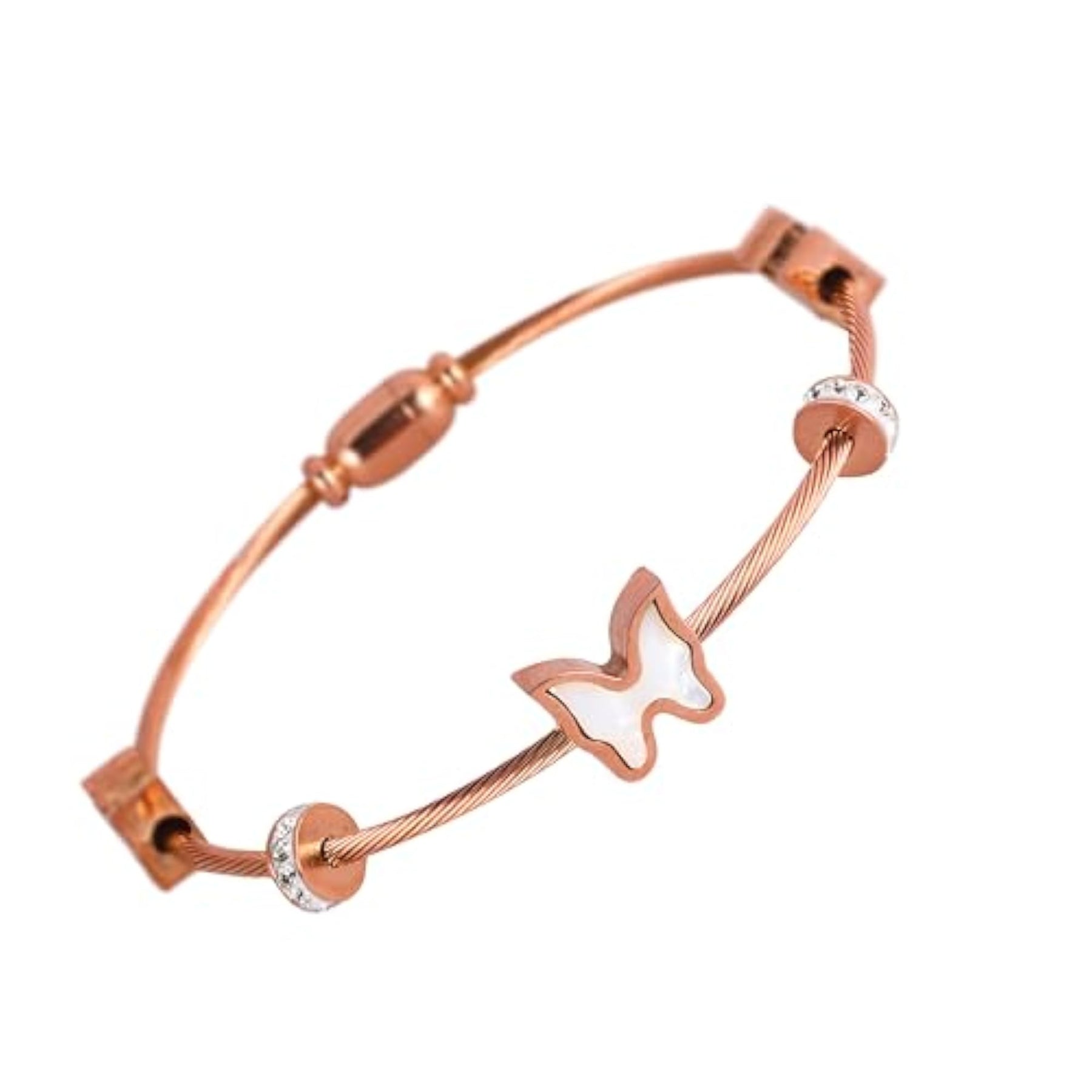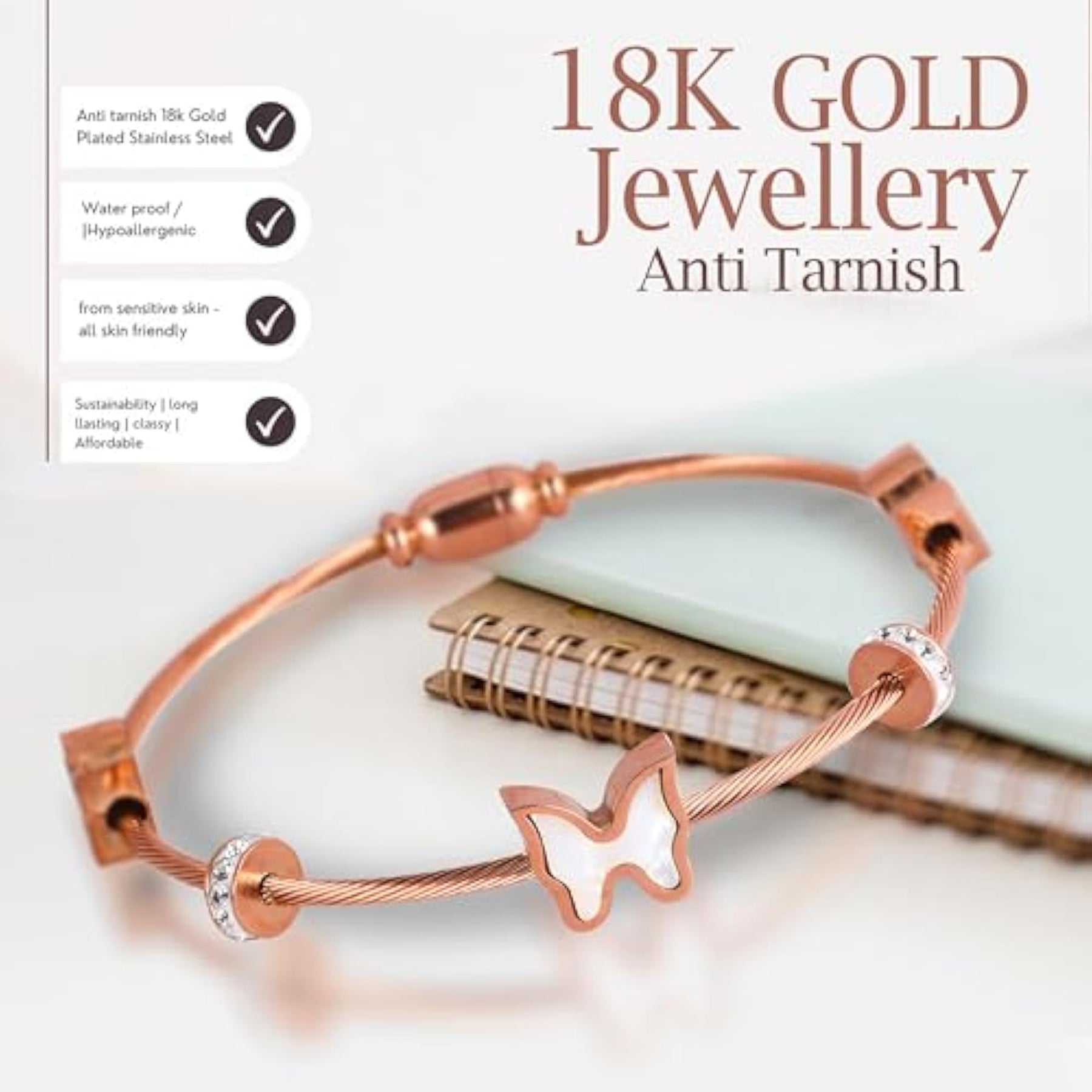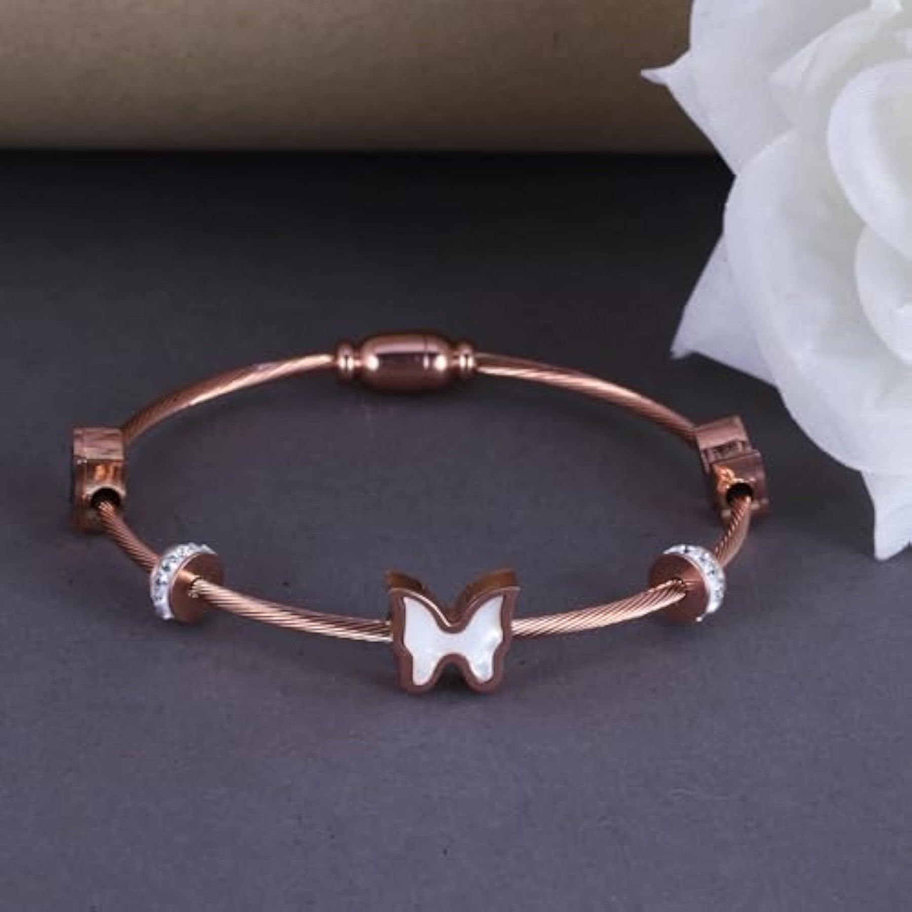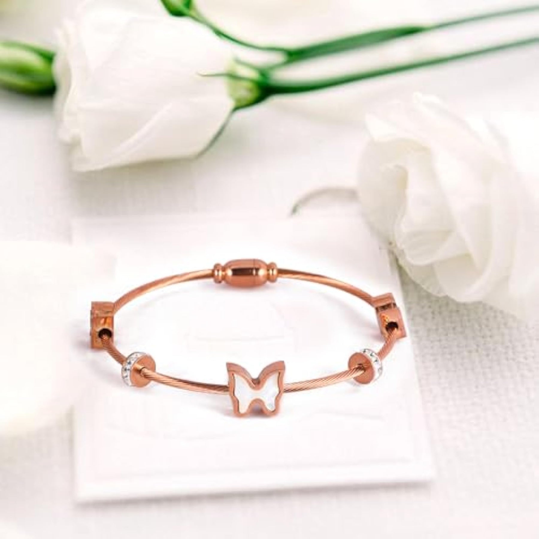 Elevate your style with this anti-tarnish bracelet that features a beautiful butterfly and rose design. The magnet lock ensures a secure fit and easy removal. Perfect accessory for girls and women.