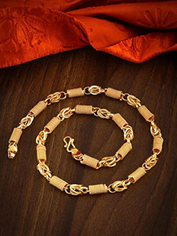 This stylish golden chain is perfect for gifting to your husband on his birthday or anniversary. It is made of high-quality stainless steel, ensuring durability and a sleek look.