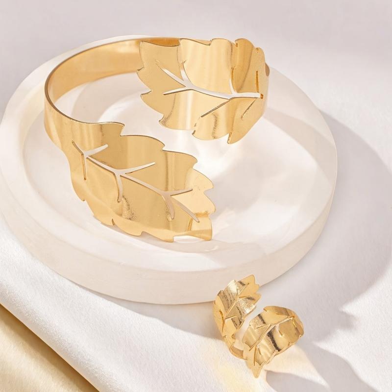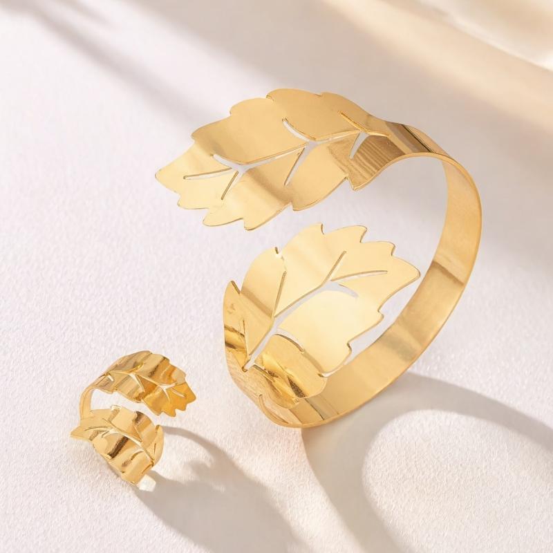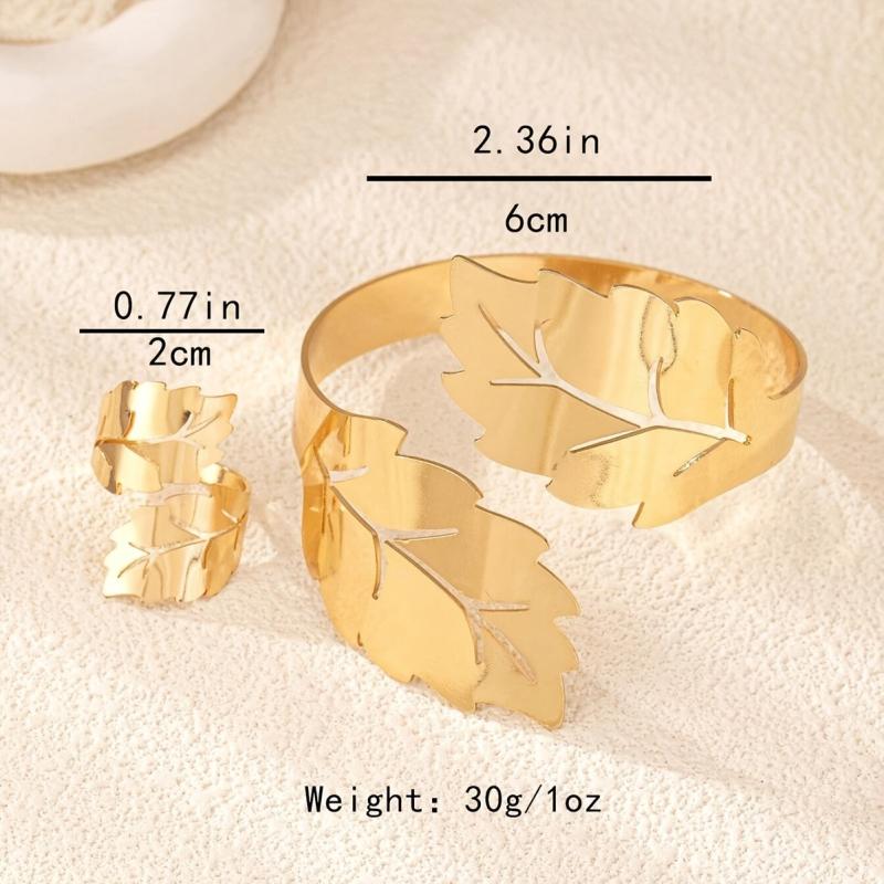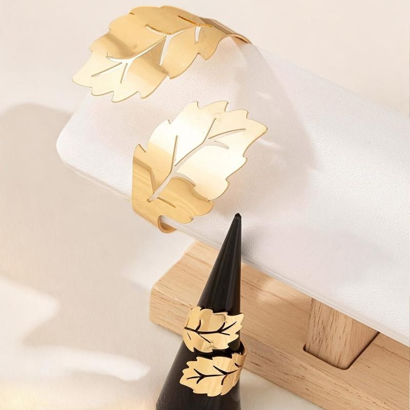Elevate your style with this elegant leaf-themed bracelet and ring set. Perfect for nature lovers!