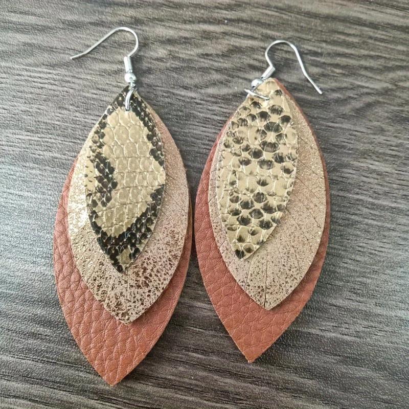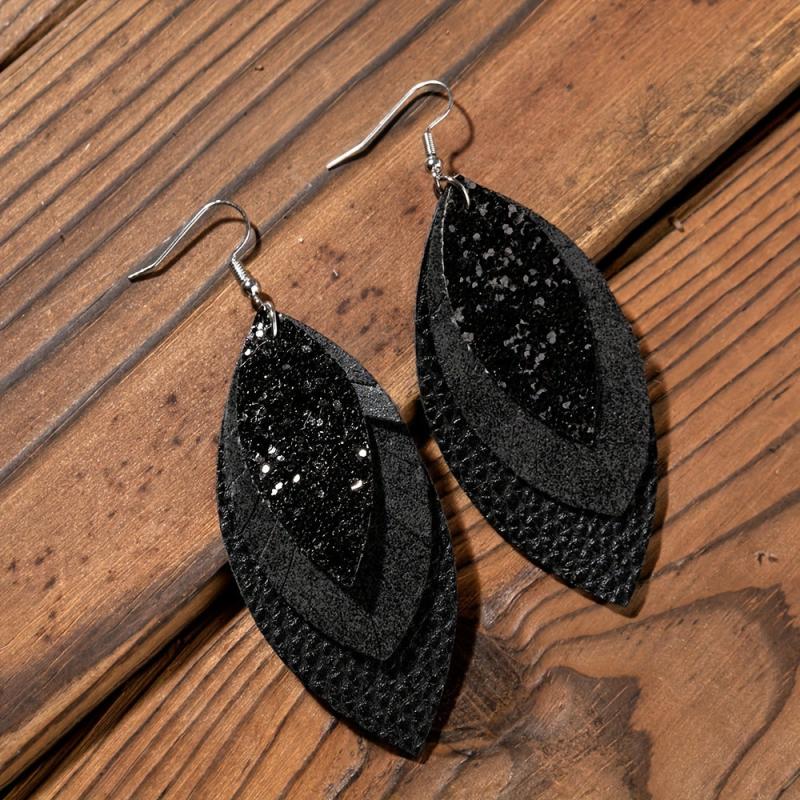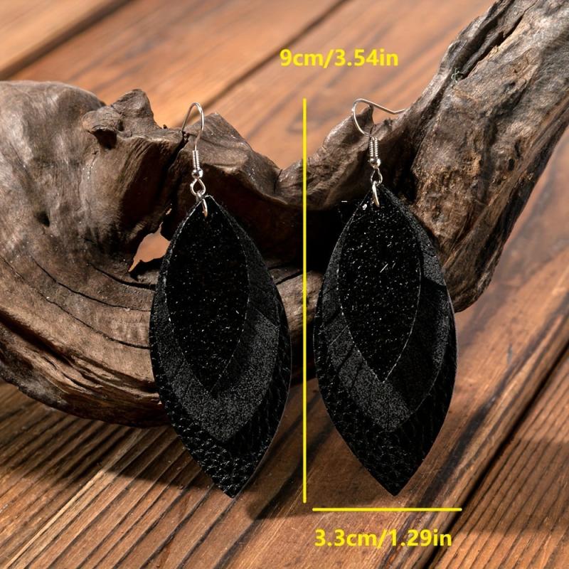 These fashionable leather earrings feature a cross border European and American style design in the shape of leaves. Made of high-quality PU leather, these earrings add a touch of elegance to any outfit.