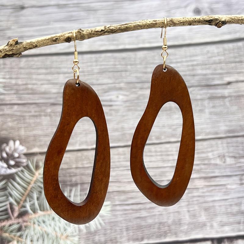 Elevate your look with this set of 5 stylish wooden pendant earrings in a versatile retro coffee color. Perfect for a bohemian vacation style, these exaggerated geometric wooden earrings are a must-have accessory.