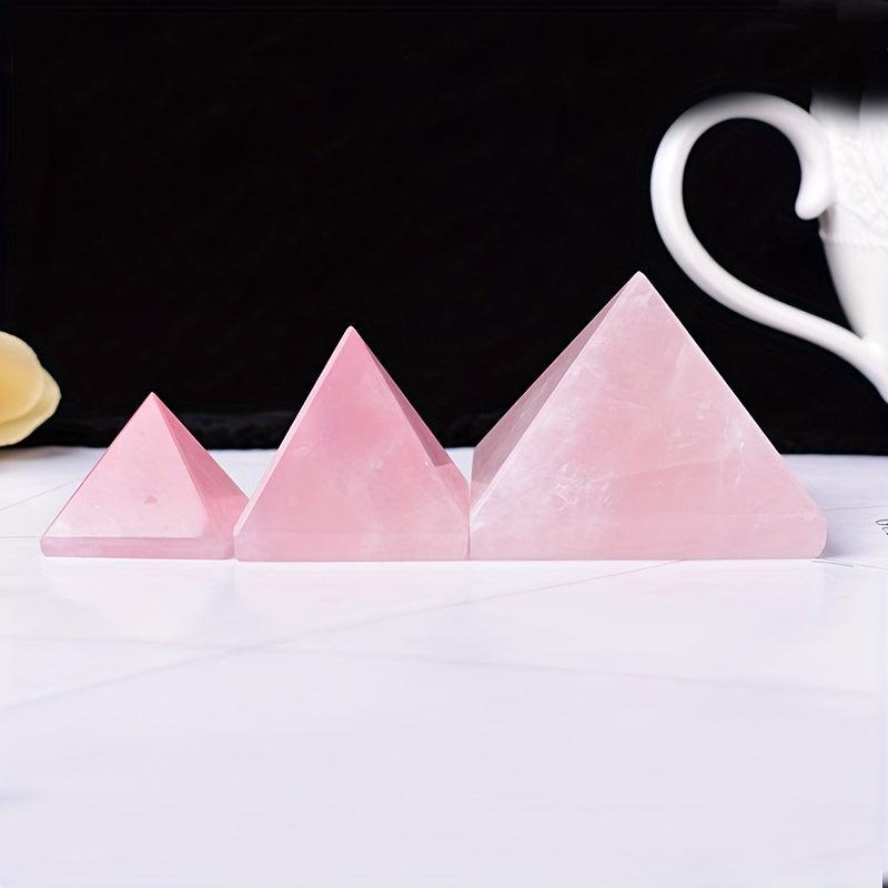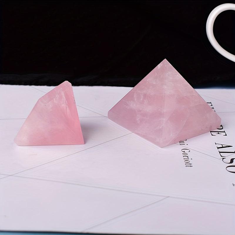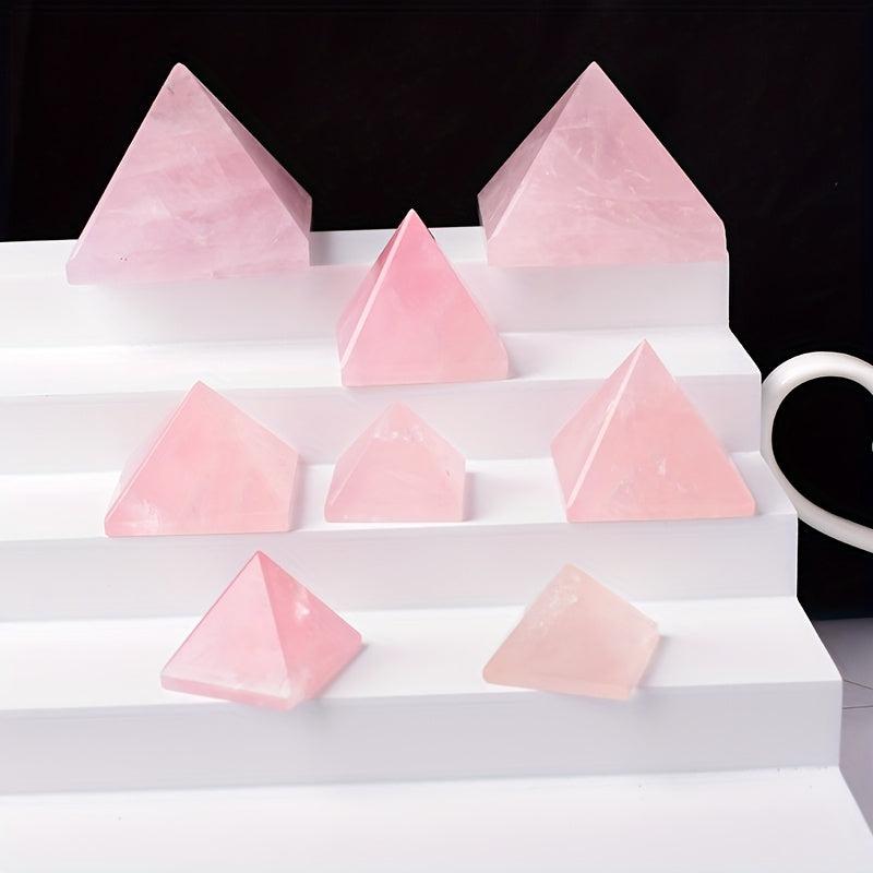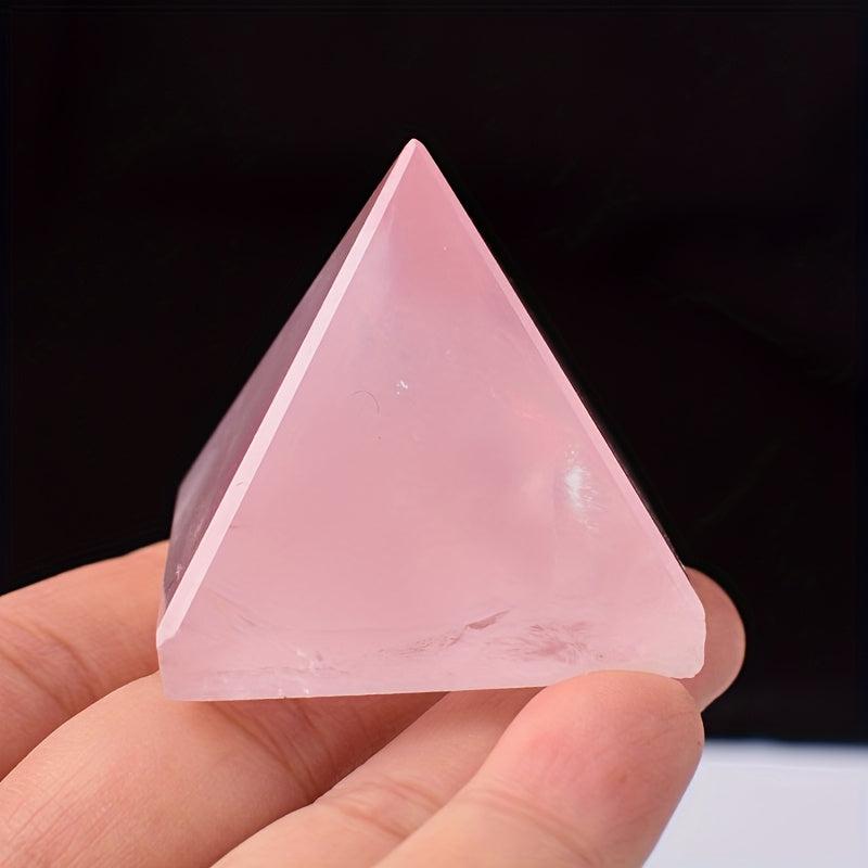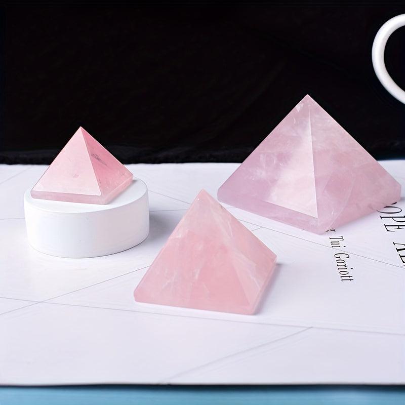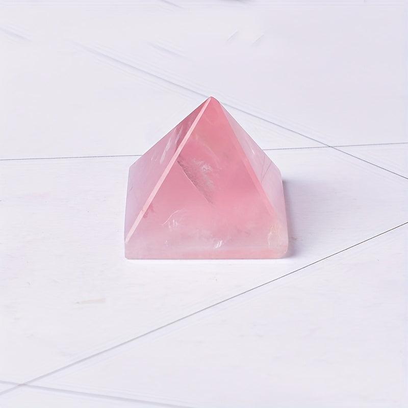 Enhance your home desk with this elegant natural rose quartz crystal pyramid. Perfect as a gift too!