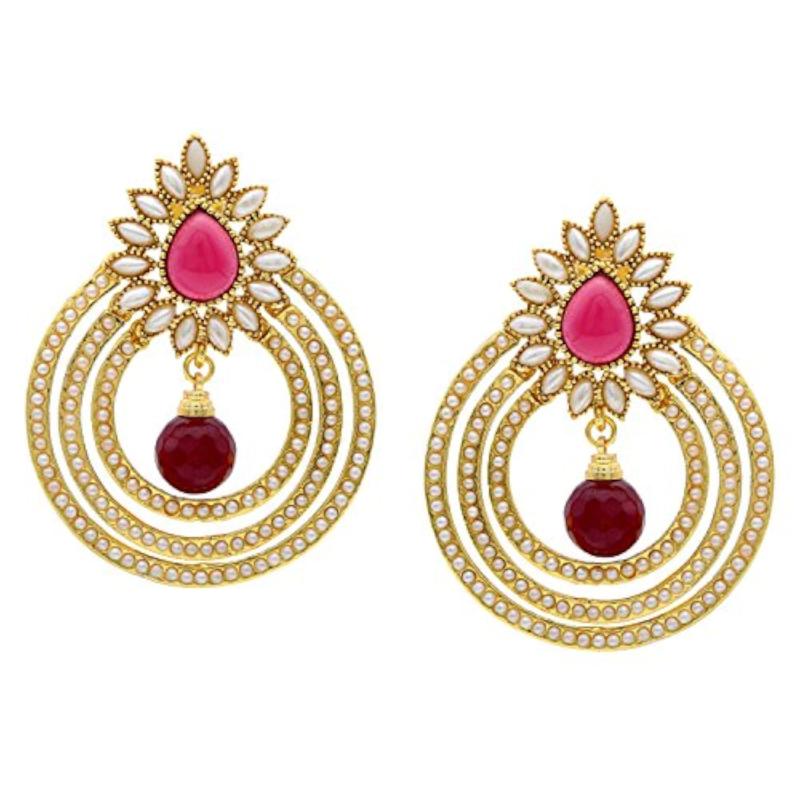 Elegant and traditional Chandbali design with fancy pearl and jhumki earrings.