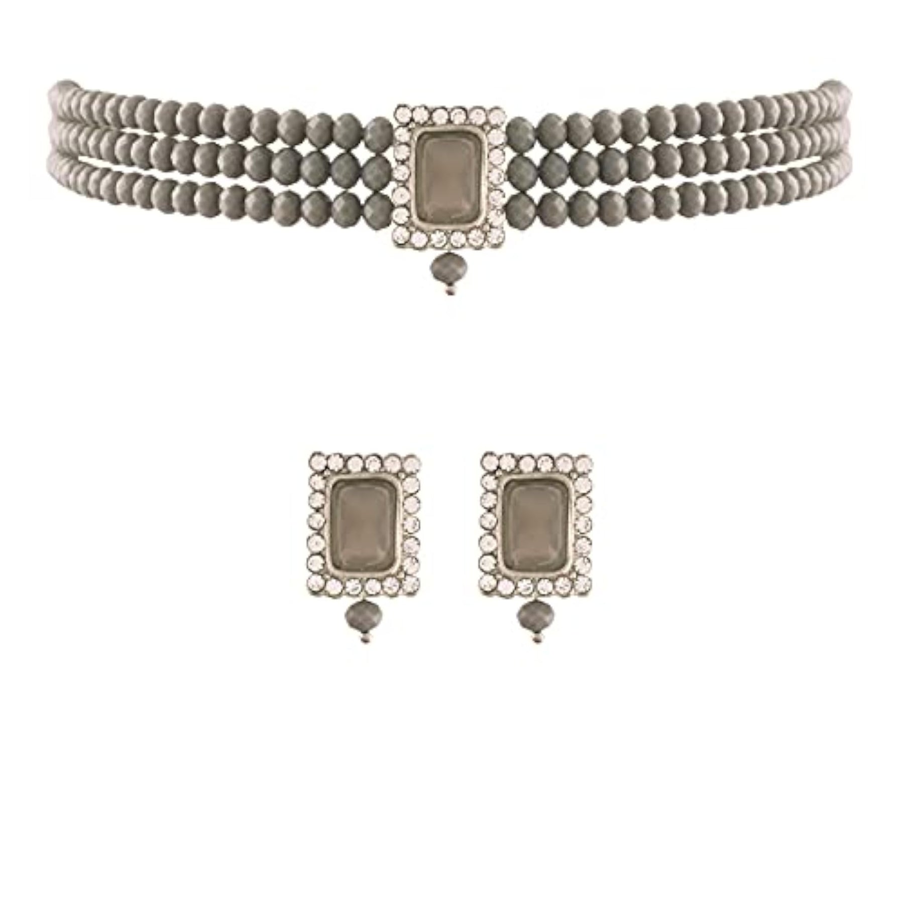 Elegant choker necklace set featuring silver plated design with traditional stone and pearl accents.
