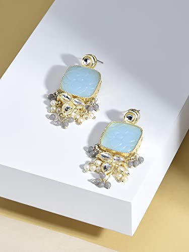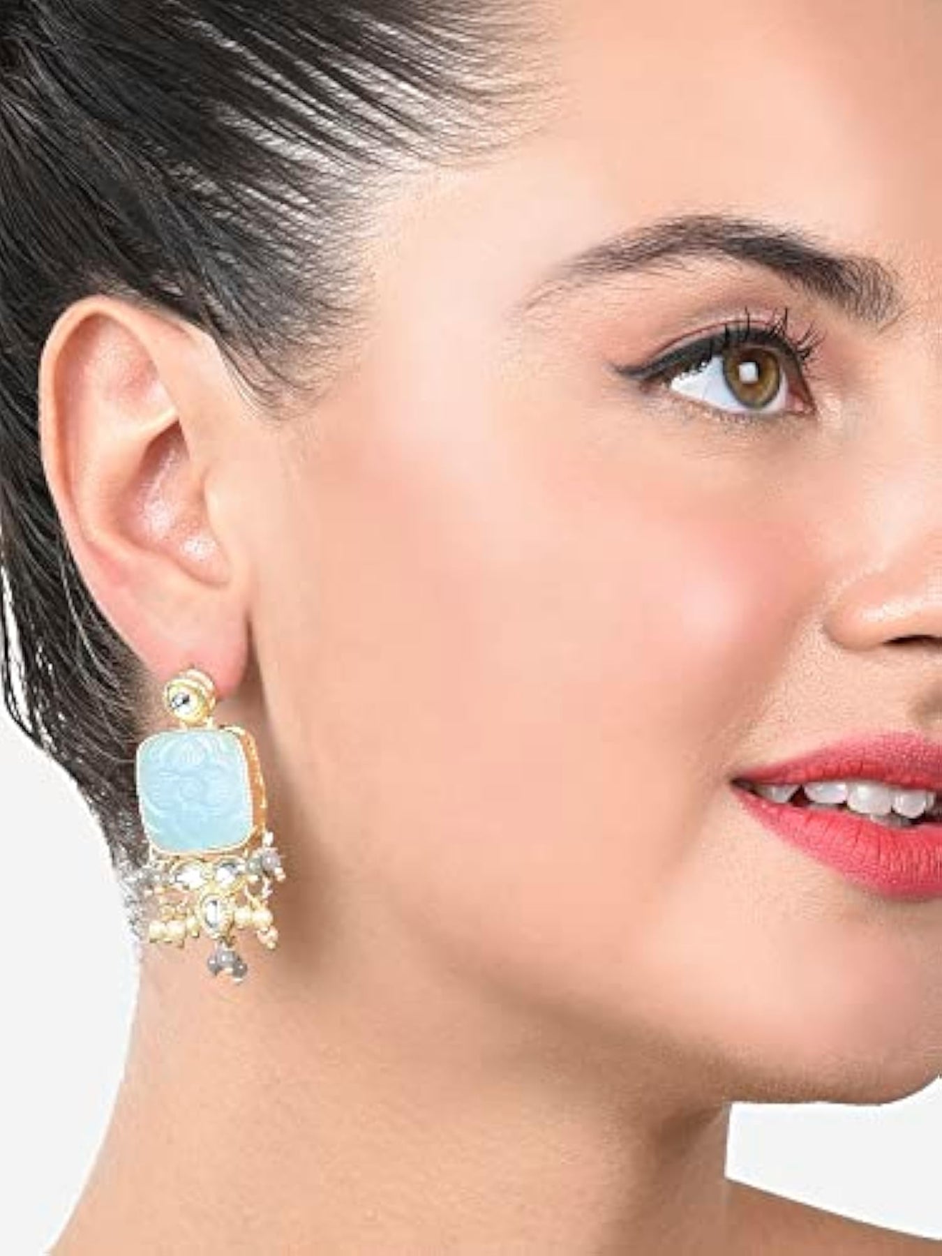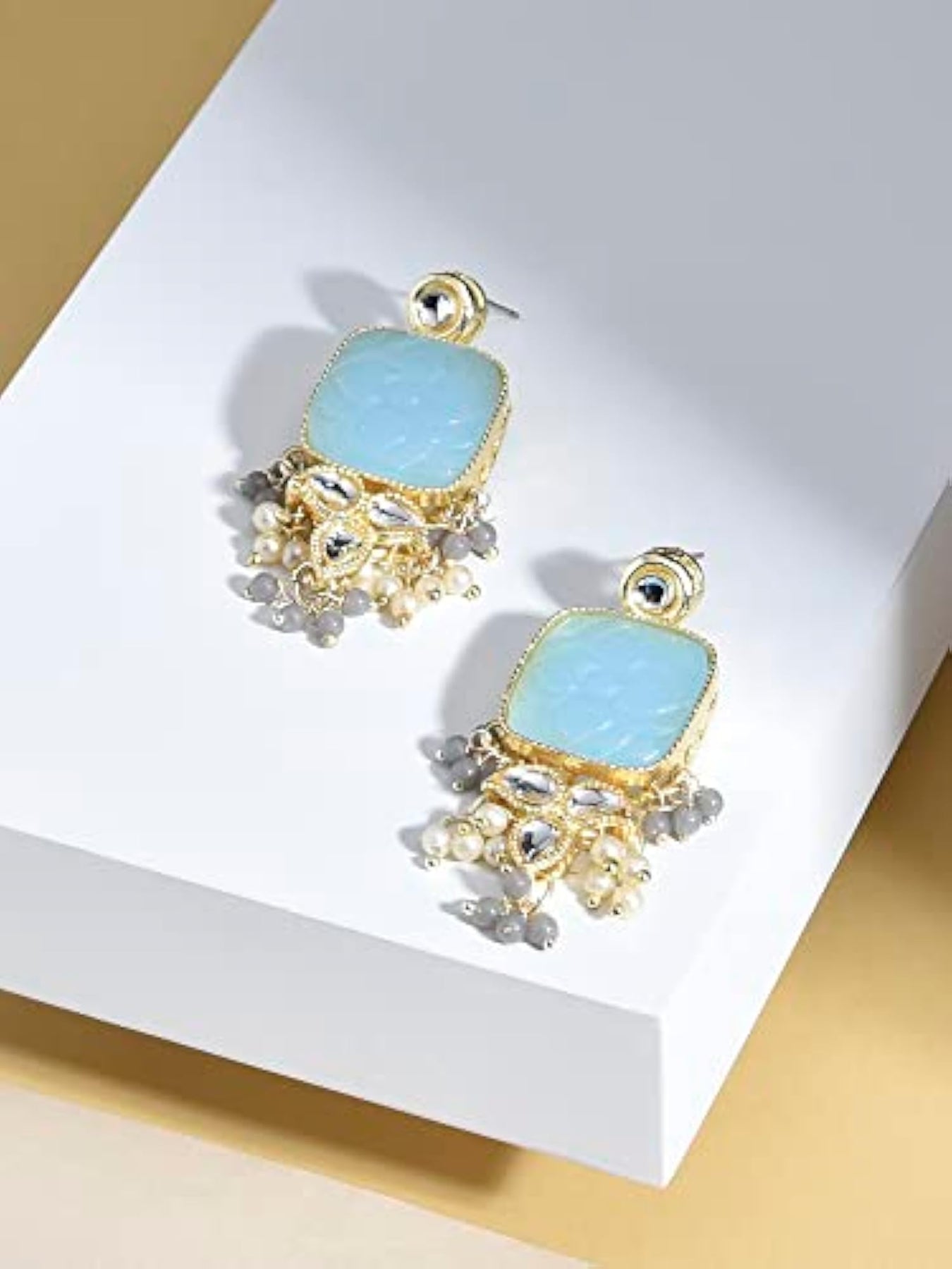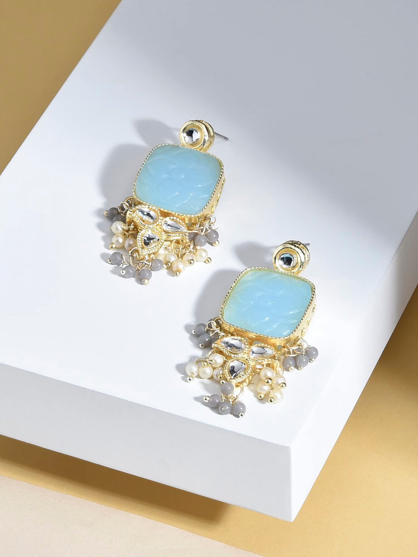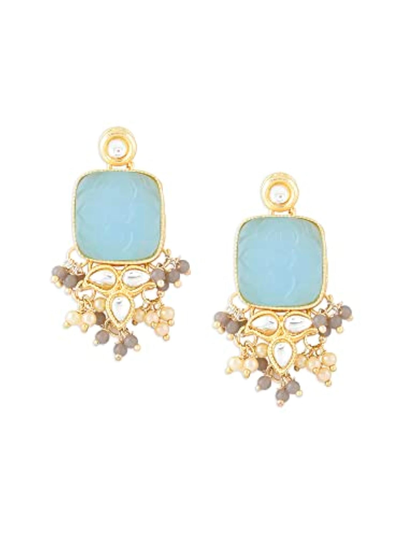 Elegant and traditional drop earrings featuring stones and beads. Perfect accessory for women.