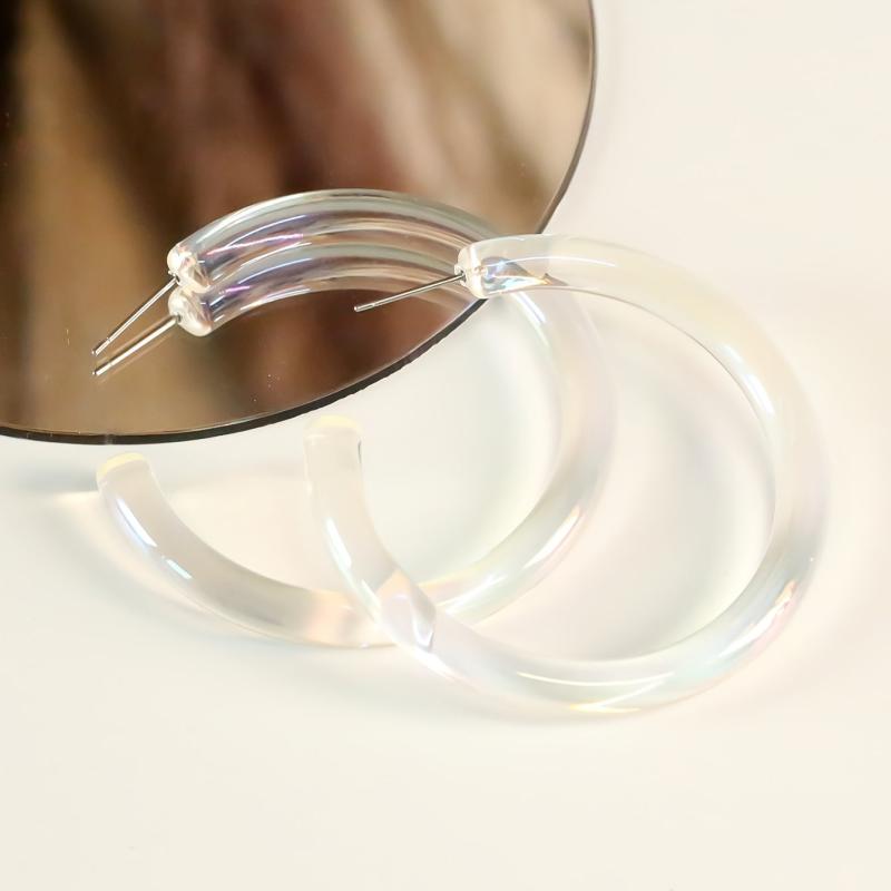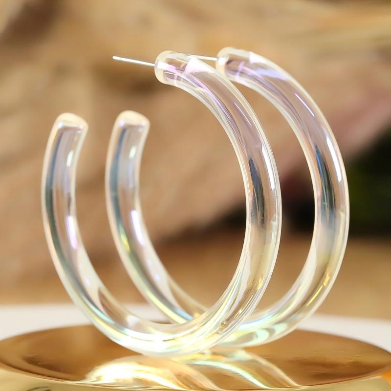 These retro-inspired hoop earrings are made from transparent resin, perfect for casual or everyday wear. They also make a great gift for women.