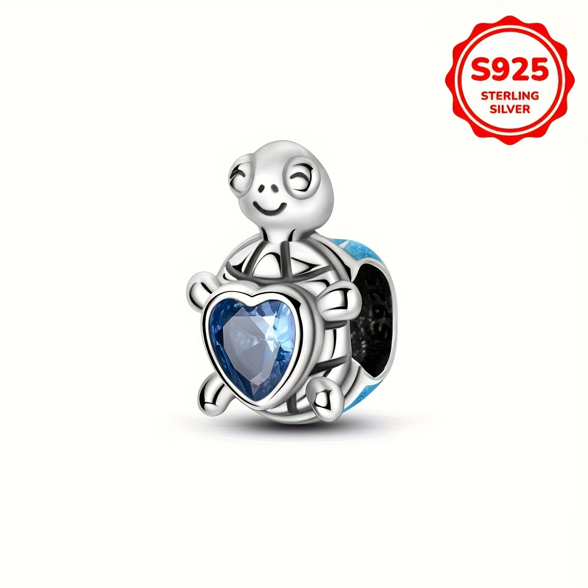 This adorable set features a turtle hugging a heart bead design, crafted from S925 sterling silver with intertwined cubic zirconia stones. Perfect for women and family members.