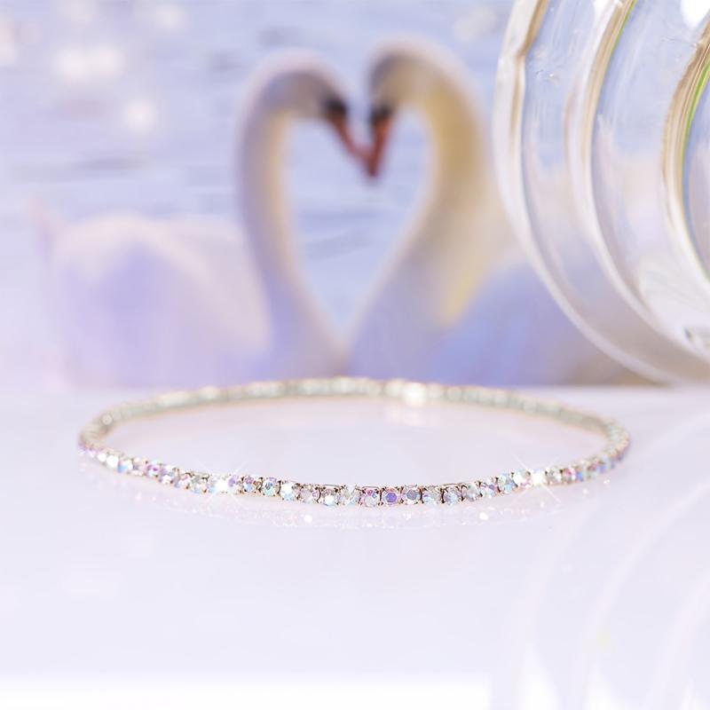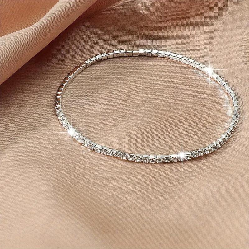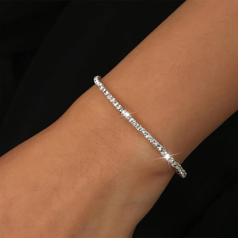 This ultra thin rhinestone tennis chain bracelet is a perfect accessory for daily wear. It adds a touch of sparkle and elegance to any outfit.