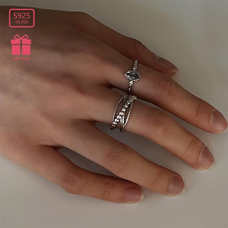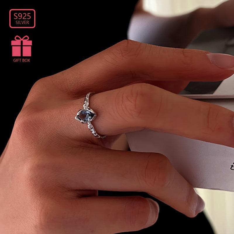 This stylish ring for women features an irregular texture crystal stone set in 925 silver. It is lightweight at just 2 grams, making it perfect for daily wear or special occasions.