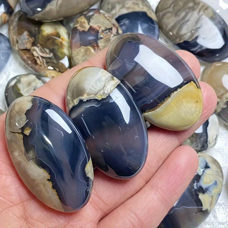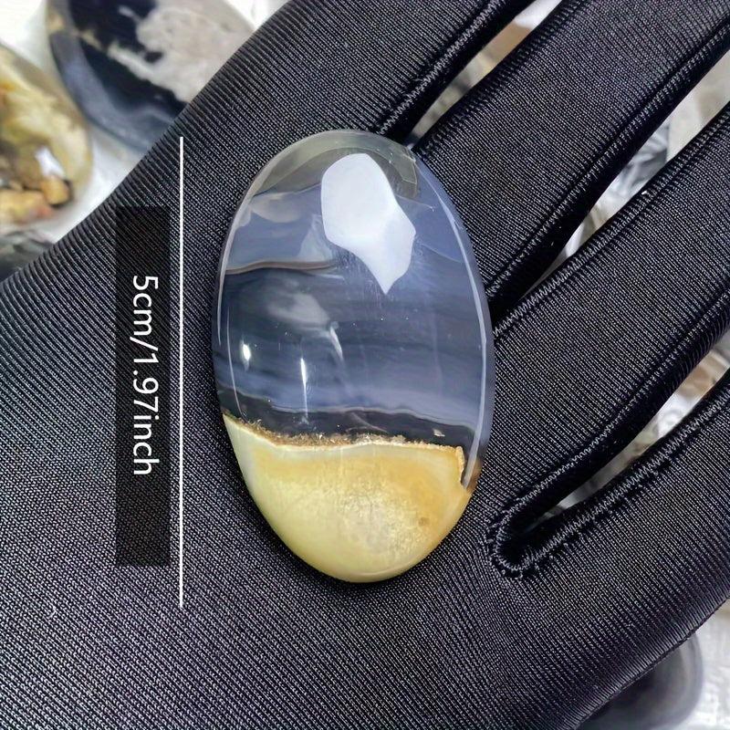 This natural agate palm stone glows in the dark and is UV reactive, making it perfect for home decor and jewelry making. Add a unique touch to your projects with this stunning stone.