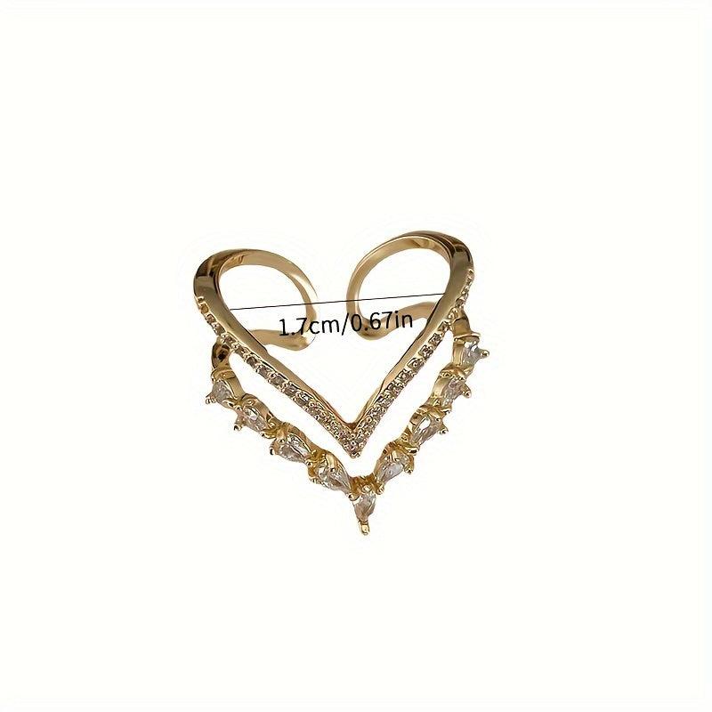 Add a touch of luxurious style to your look with this double V shaped ring featuring sparkling zirconia. This adjustable open ring is the perfect faux jewelry accessory for any outfit.