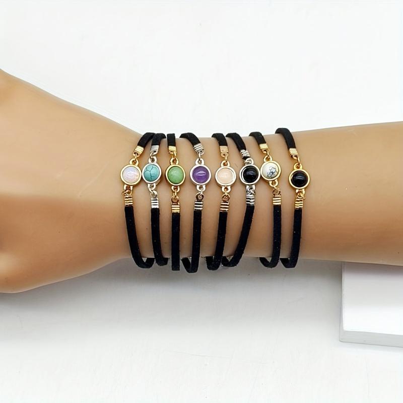 Add a touch of Middle Eastern flair to your look with this fashionable velvet band bracelet, featuring inlaid moonstone, lapis lazuli, and other stones. Its solid design is versatile and can be worn for a variety of occasions, giving you a youthful and vibrant appearance.