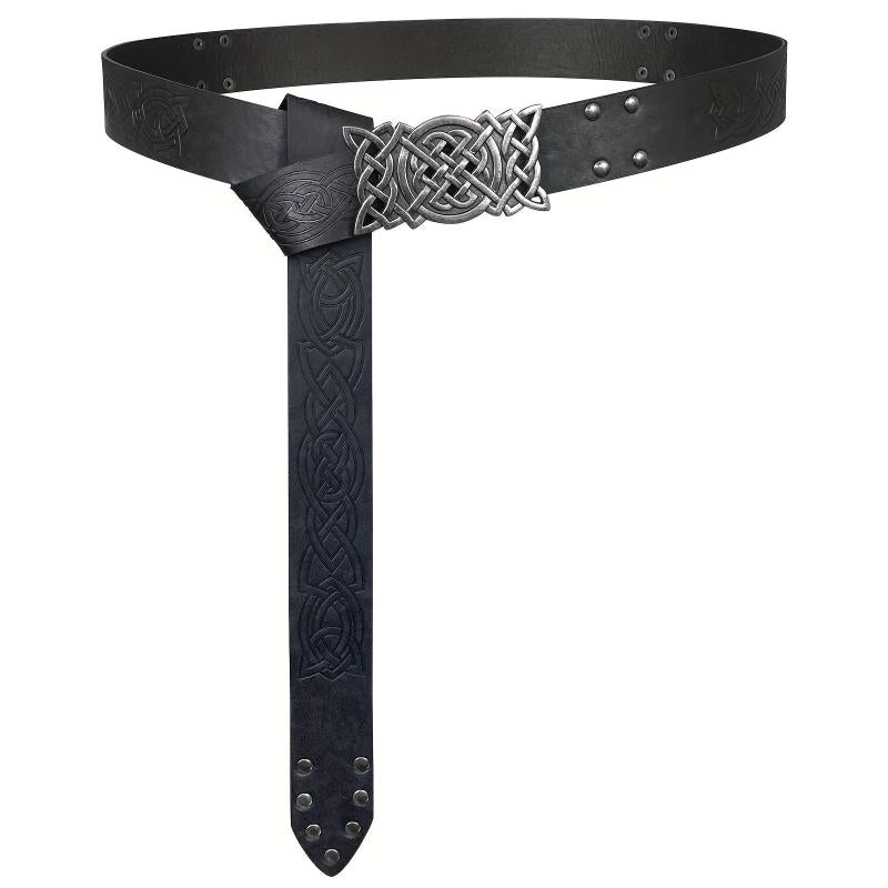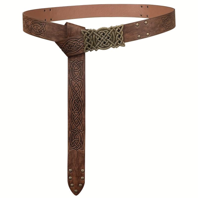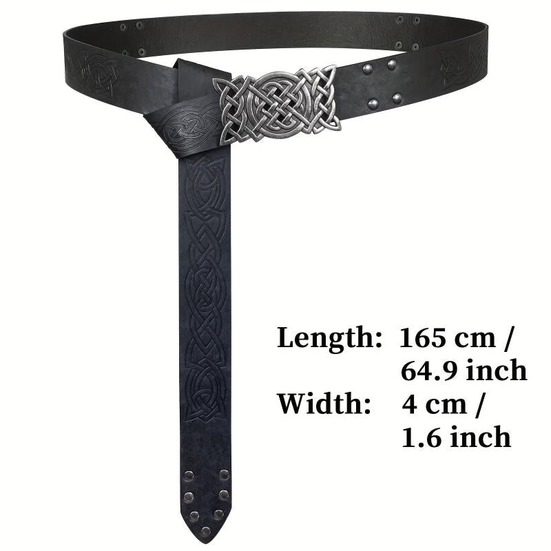 This Viking-style embossed belt is made of high-quality PU leather, perfect for medieval cosplay or reenactments.