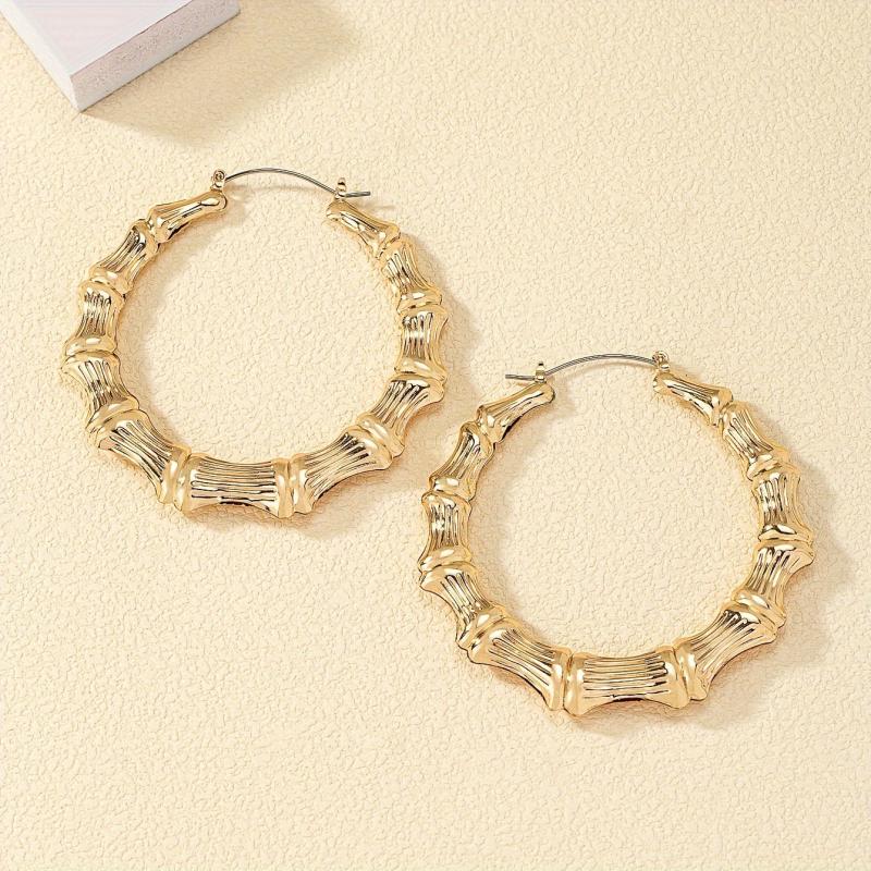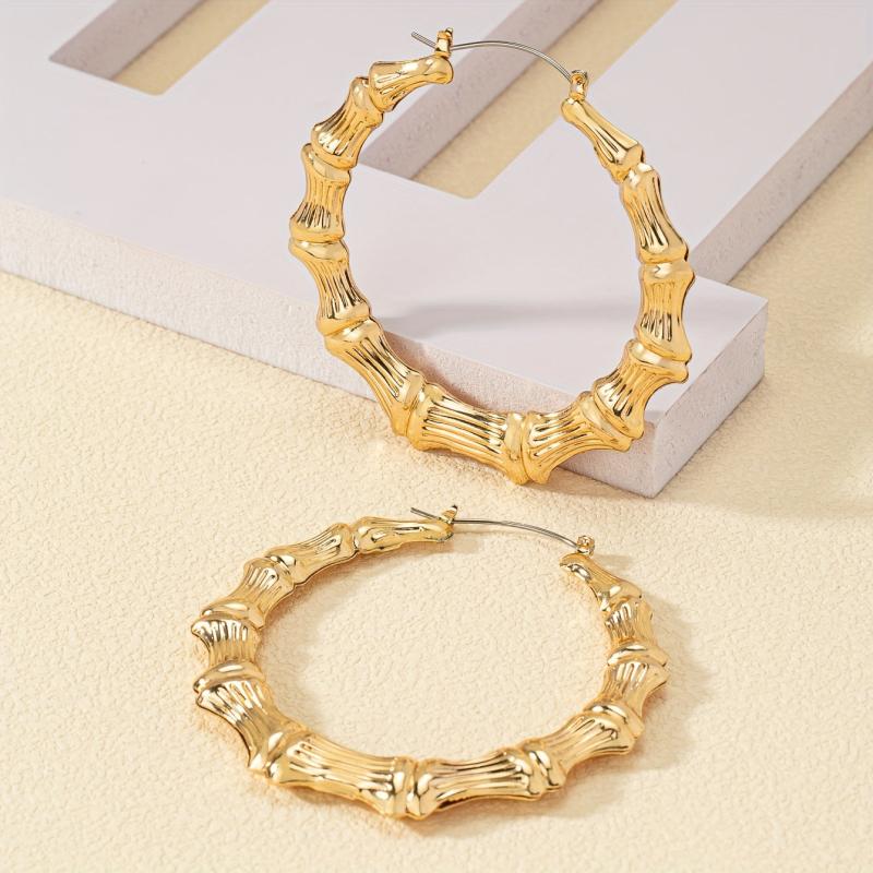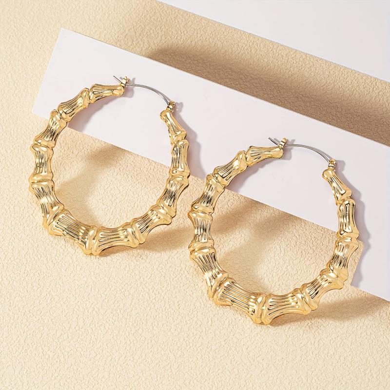 Add a touch of European and American style with these exaggerated vintage bamboo knot earrings. Perfect for a unique and stylish look.