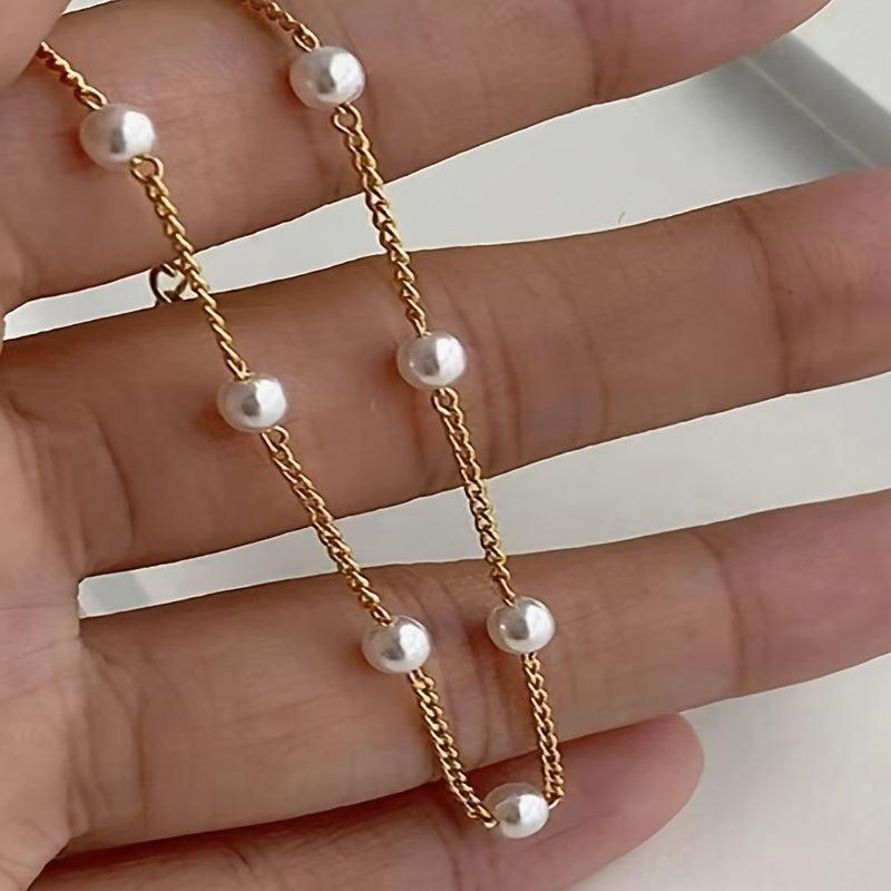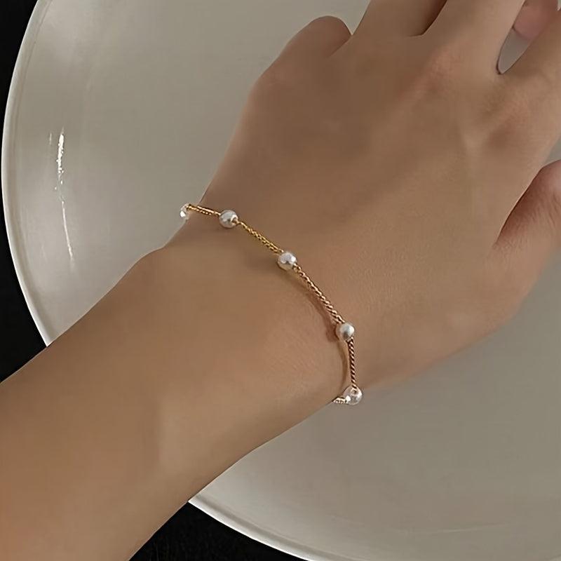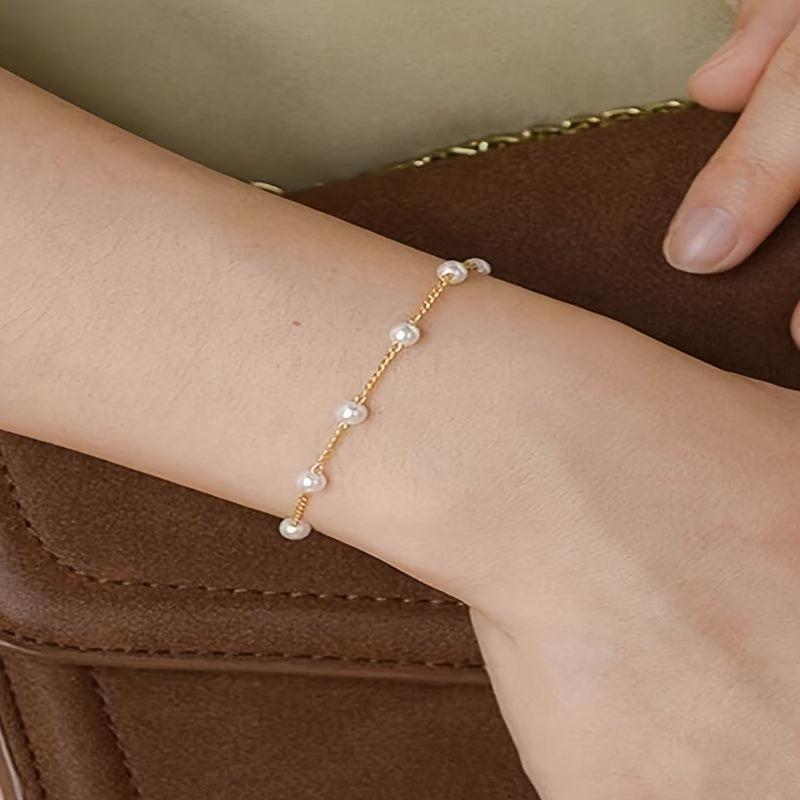 Add a touch of bohemian elegance to your look with this vintage style hand chain bracelet featuring faux pearl beads. Made of zinc alloy, this bracelet is perfect for daily wear and gift-giving. Unplated and no setting copper for a unique look.