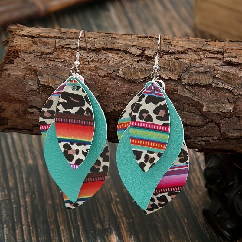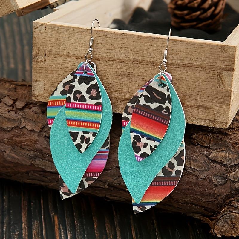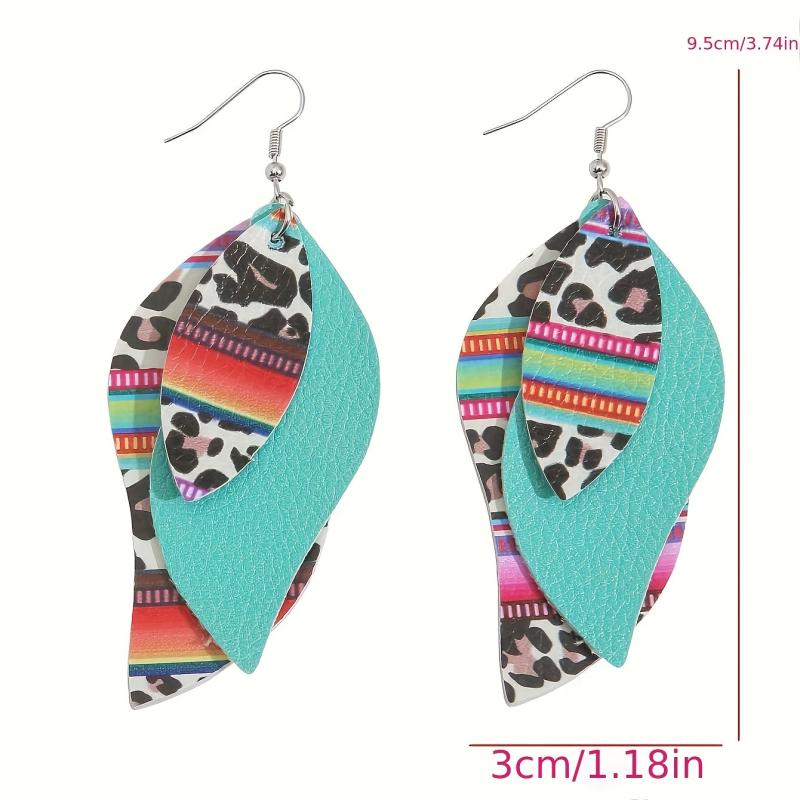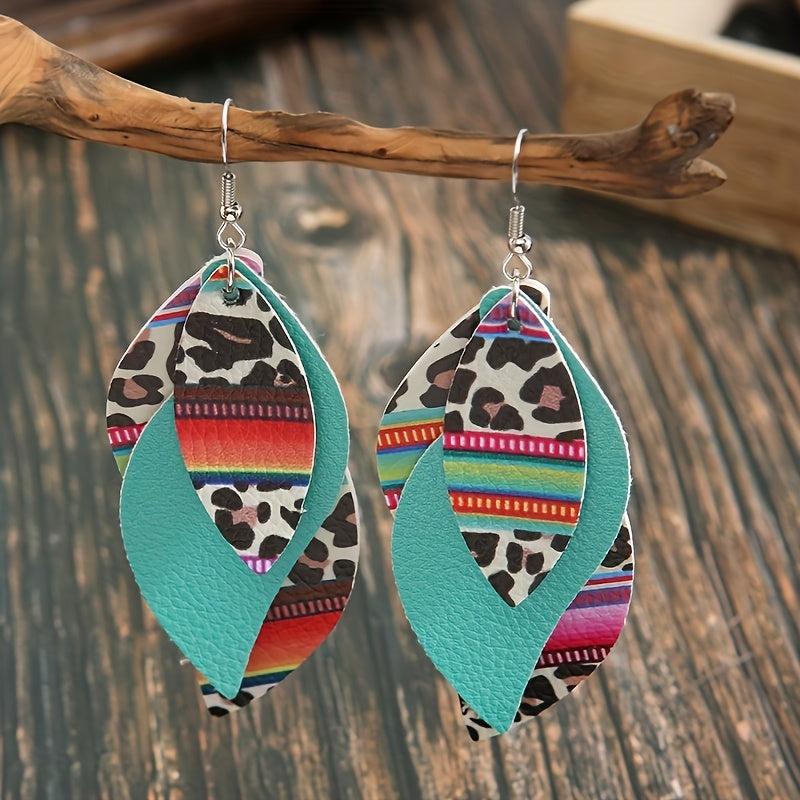 Add a touch of bohemian charm to your look with these colorful layer earrings made of faux leather.