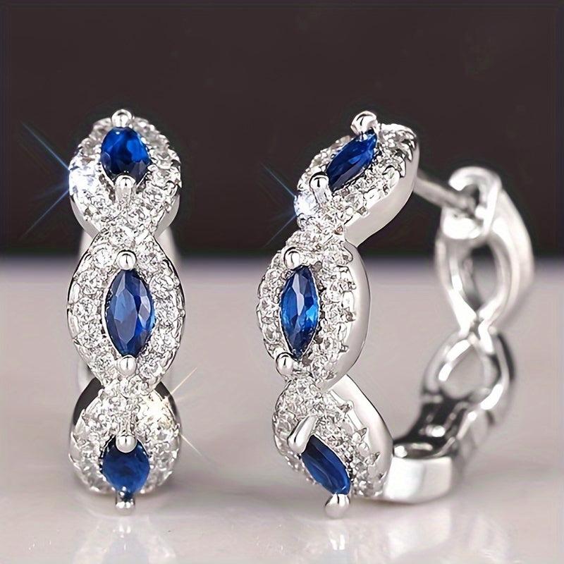 Add a touch of elegance to your look with these vintage bohemian hoop earrings featuring marquise cut synthetic sapphire stones and sparkling clear crystals. The nickel golden plated design adds a luxurious touch to any outfit.