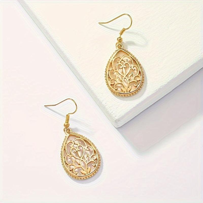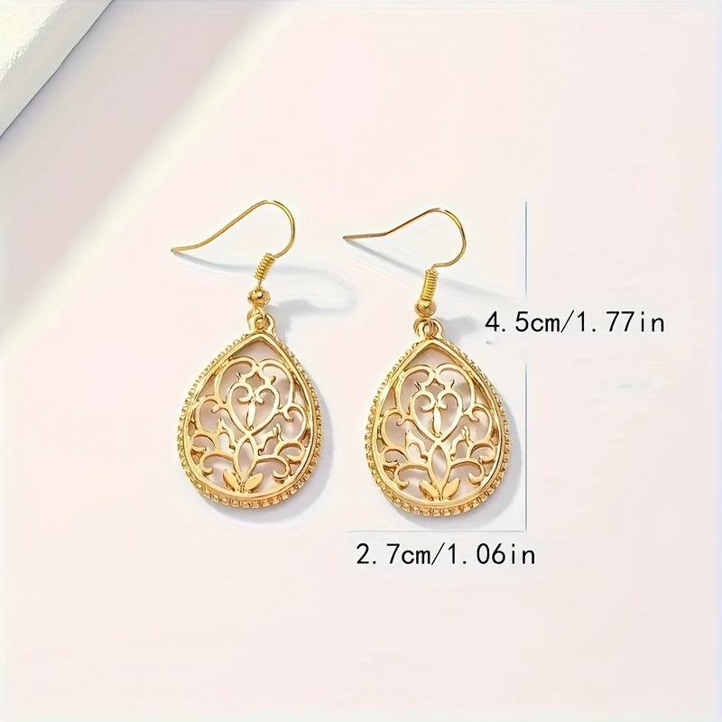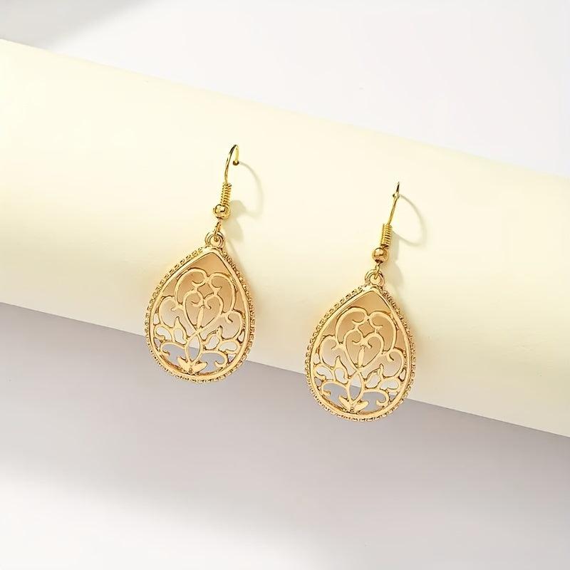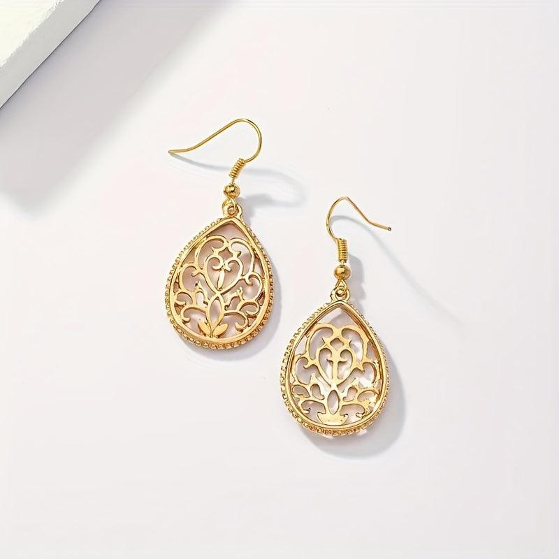 Add a touch of Western charm with these golden metal teardrop earrings featuring intricate hollow patterns. Perfect for women who love vintage style.
