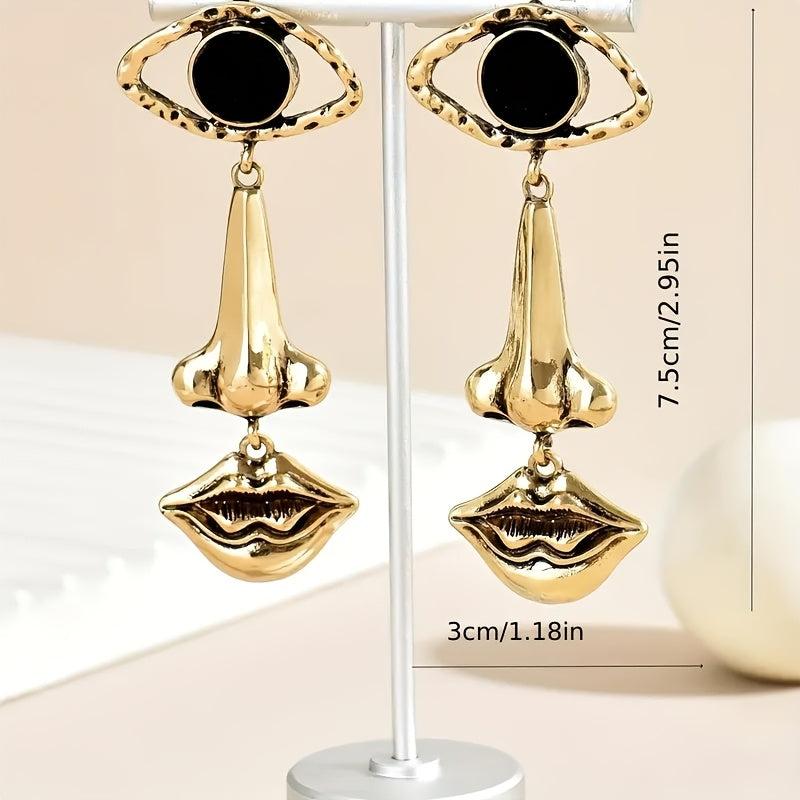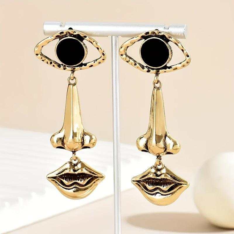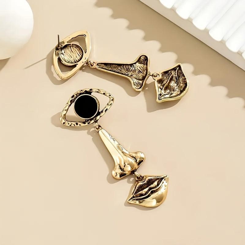 Unique vintage boho earrings with abstract face design. Made of zinc alloy with iron posts, perfect for daily wear or gifting.