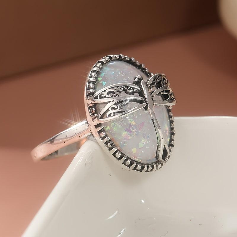 Add a touch of bohemian charm to your outfit with this women's statement ring. Made of 925 silver-plated copper and featuring a synthetic opal, this ring is suitable for all seasons and makes a great Christmas gift. Ideal for daily wear, it's perfect for adding a unique touch to any look.