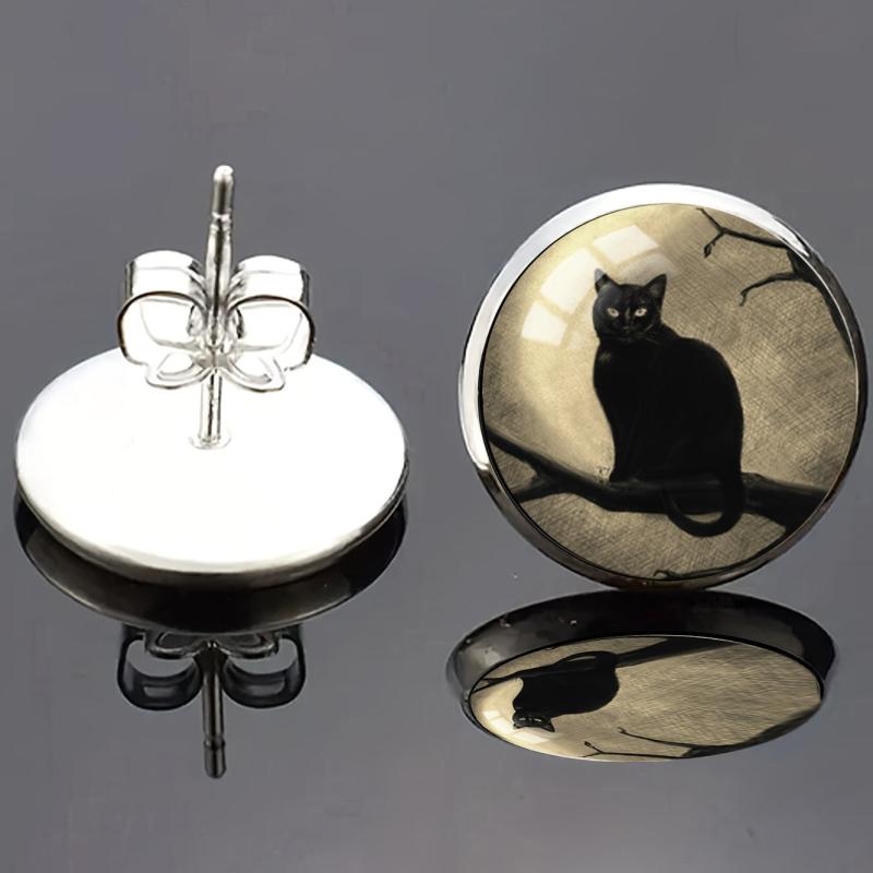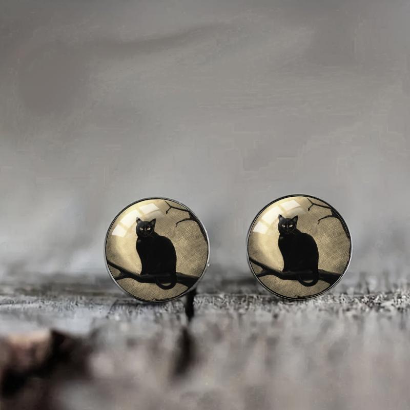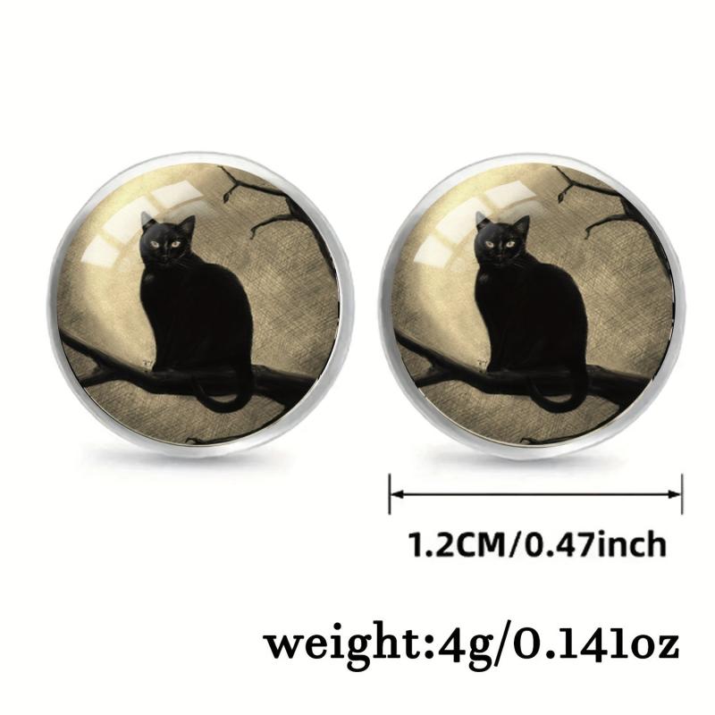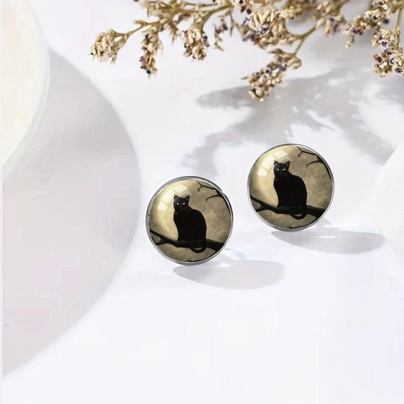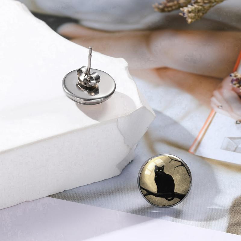 These vintage cat ear studs are made of hypoallergenic stainless steel and feature a retro animal theme. The 3D convex glass cover adds a unique touch to these earrings, making them perfect for weddings and parties.