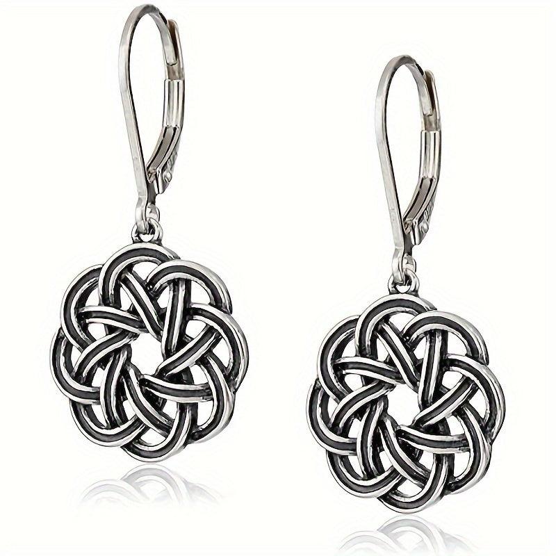 These stunning vintage earrings feature a Celtic knot design with a flower drop. Made of antique nickel copper, they are a beautiful accessory to add a touch of elegance to any outfit.