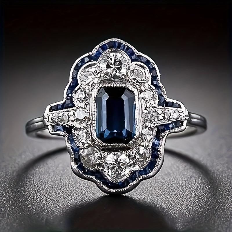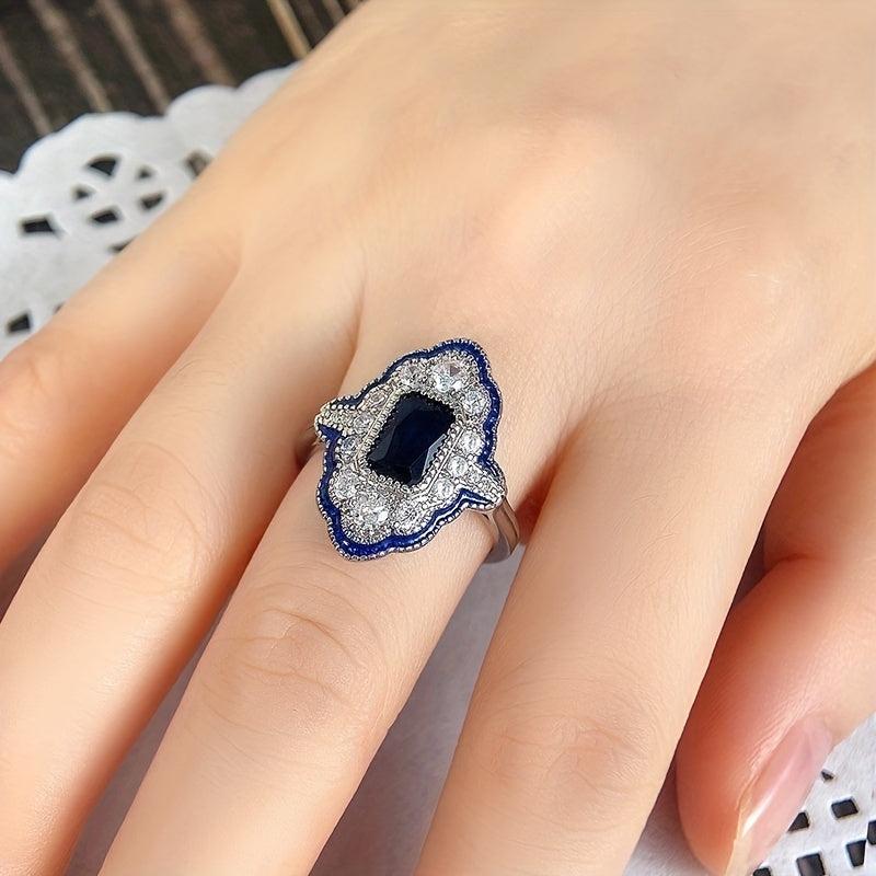 Stunning copper ring featuring a synthetic sapphire square gemstone, perfect for September birthdays. This elegant piece is a great gift for women and a stylish party accessory suitable for all seasons.