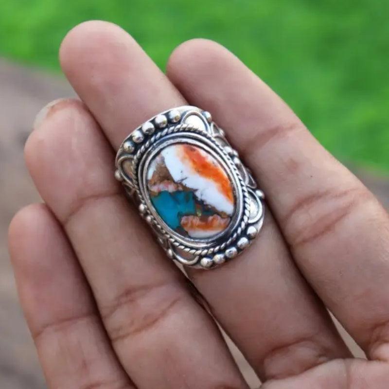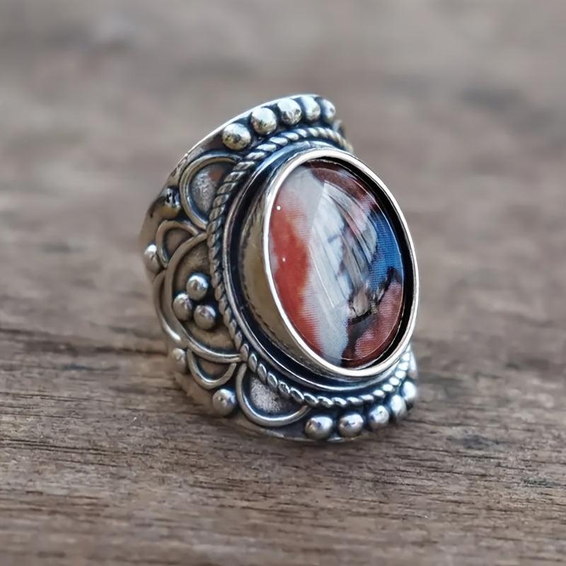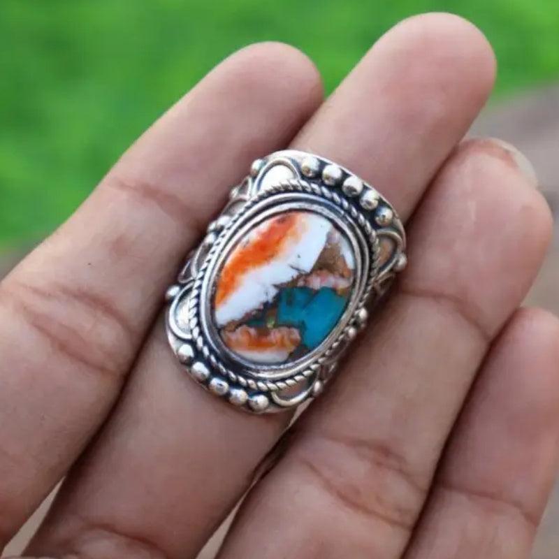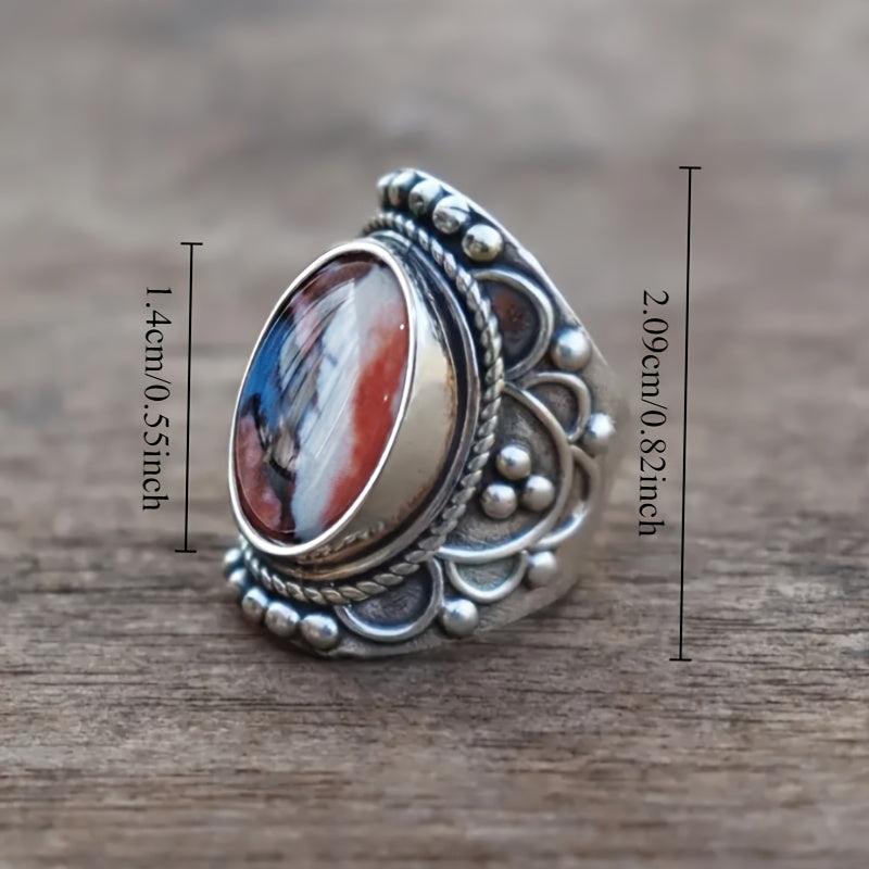 This vintage ethnic style ring features intricate carving and gemstone accents. Perfect for parties, banquets, or daily wear.