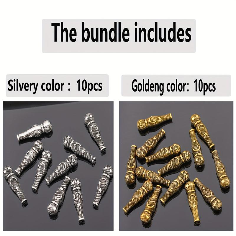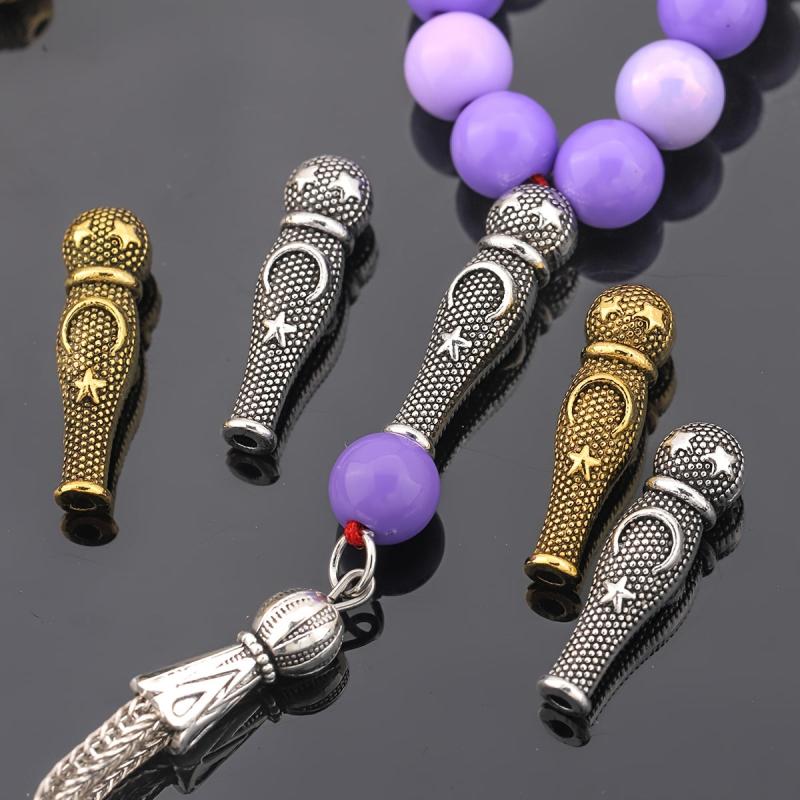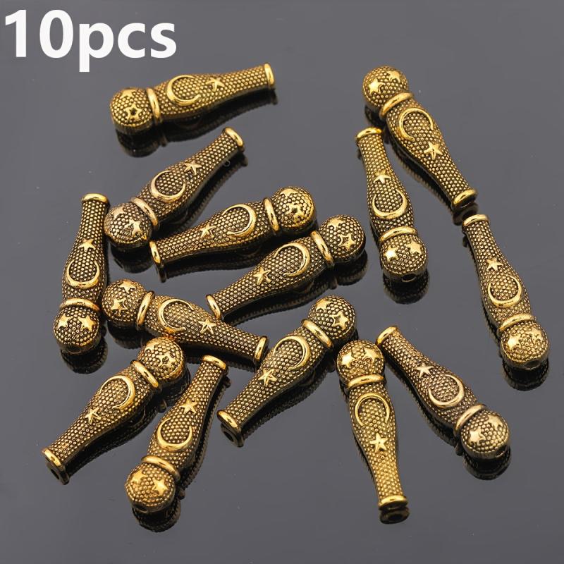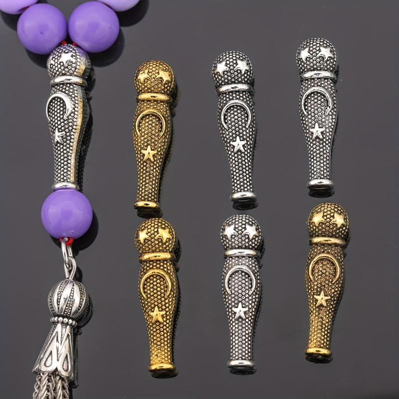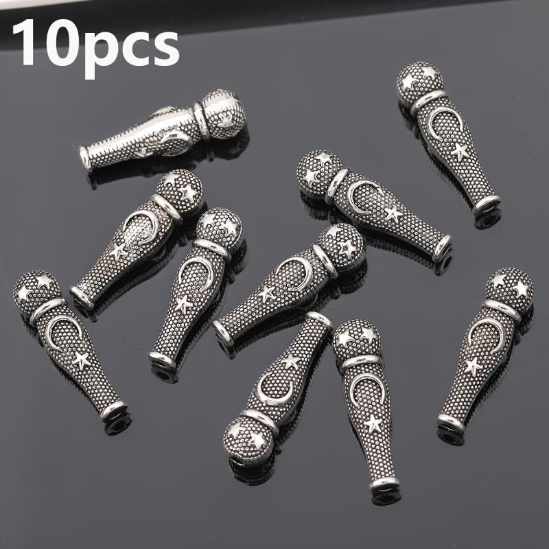 Add a touch of ethnic style to your jewelry designs with these vintage tassel beads featuring a flat head star and moon pattern. These 23mm round spacer beads have a vertical hole for easy stringing.