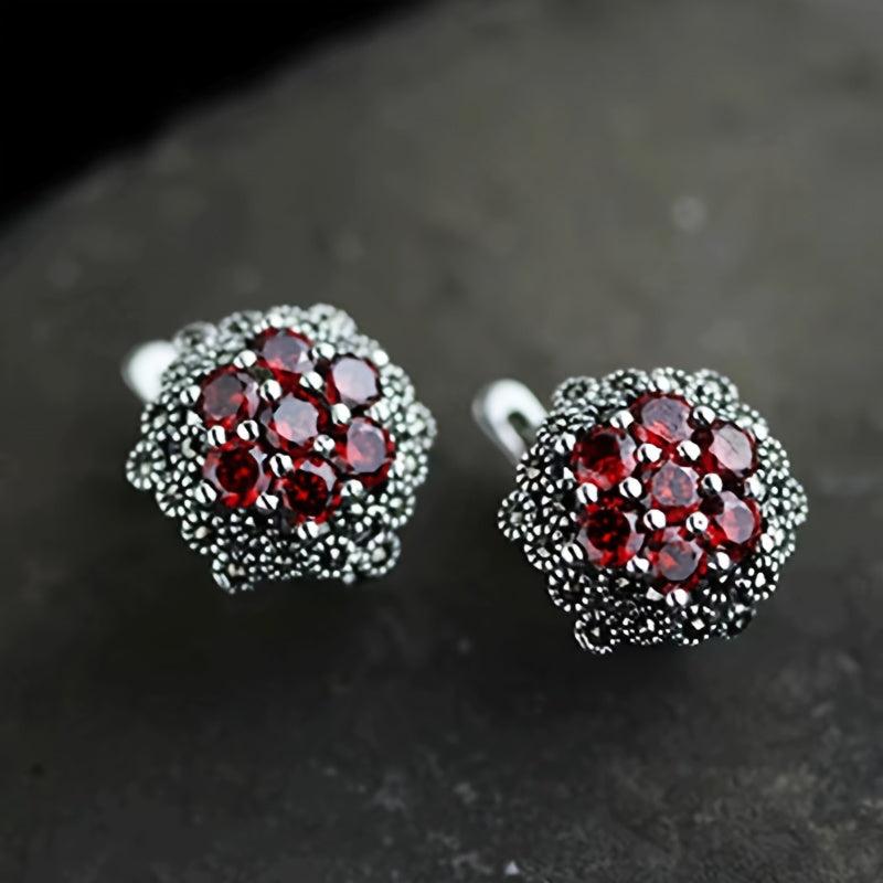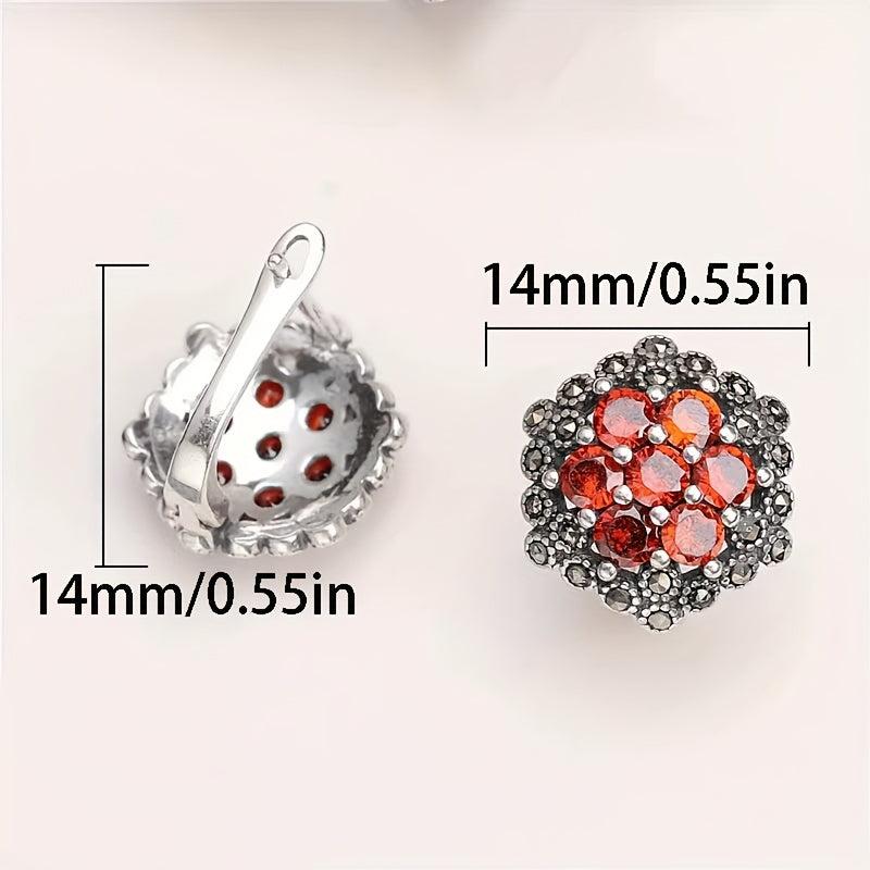 These elegant stud earrings feature garnet gemstones in a vintage flower design. Crafted in hypoallergenic 925 sterling silver with accent stones and synthetic zirconia, these earrings are a beautiful addition to any jewelry collection. Perfect for gifting.